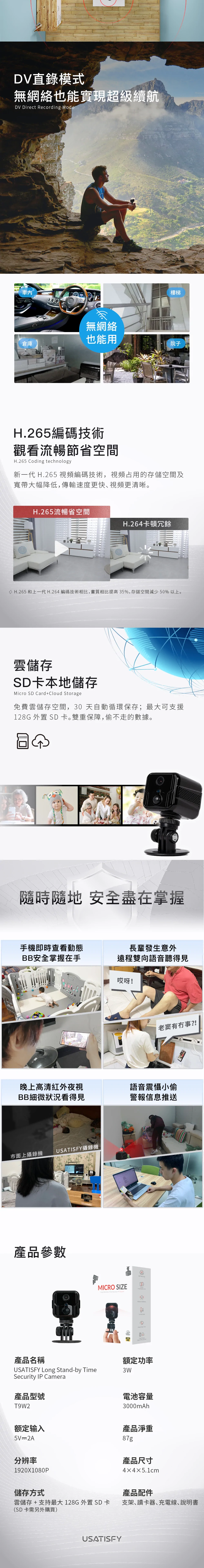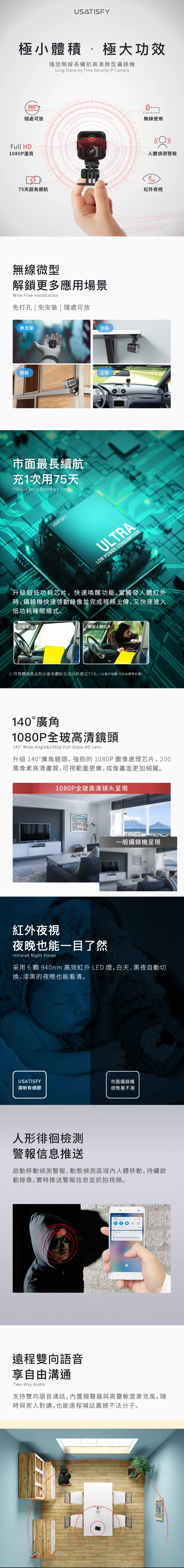 1.超迷你攝像監視器,3000mAh超強續航市面最長,室內戶外都可使用