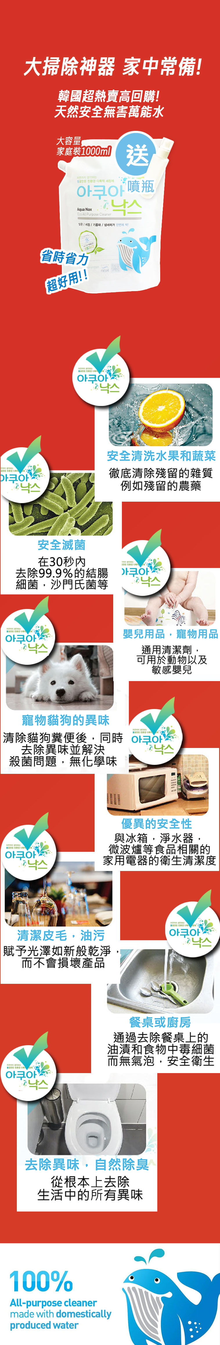 ✔除油 (清潔廚房、代替洗潔精來洗刷碗筷)