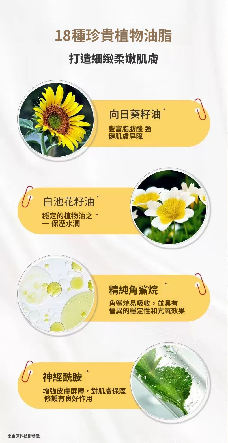 3.水潤細膩,植物油基底,觸膚即融,細膩肌膚