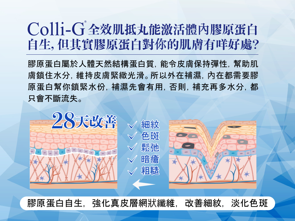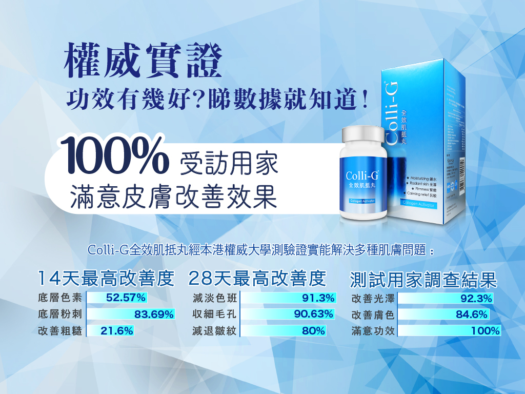 科利-G全效肌抵丸有效解決肌膚老化問題最高達90%以上。