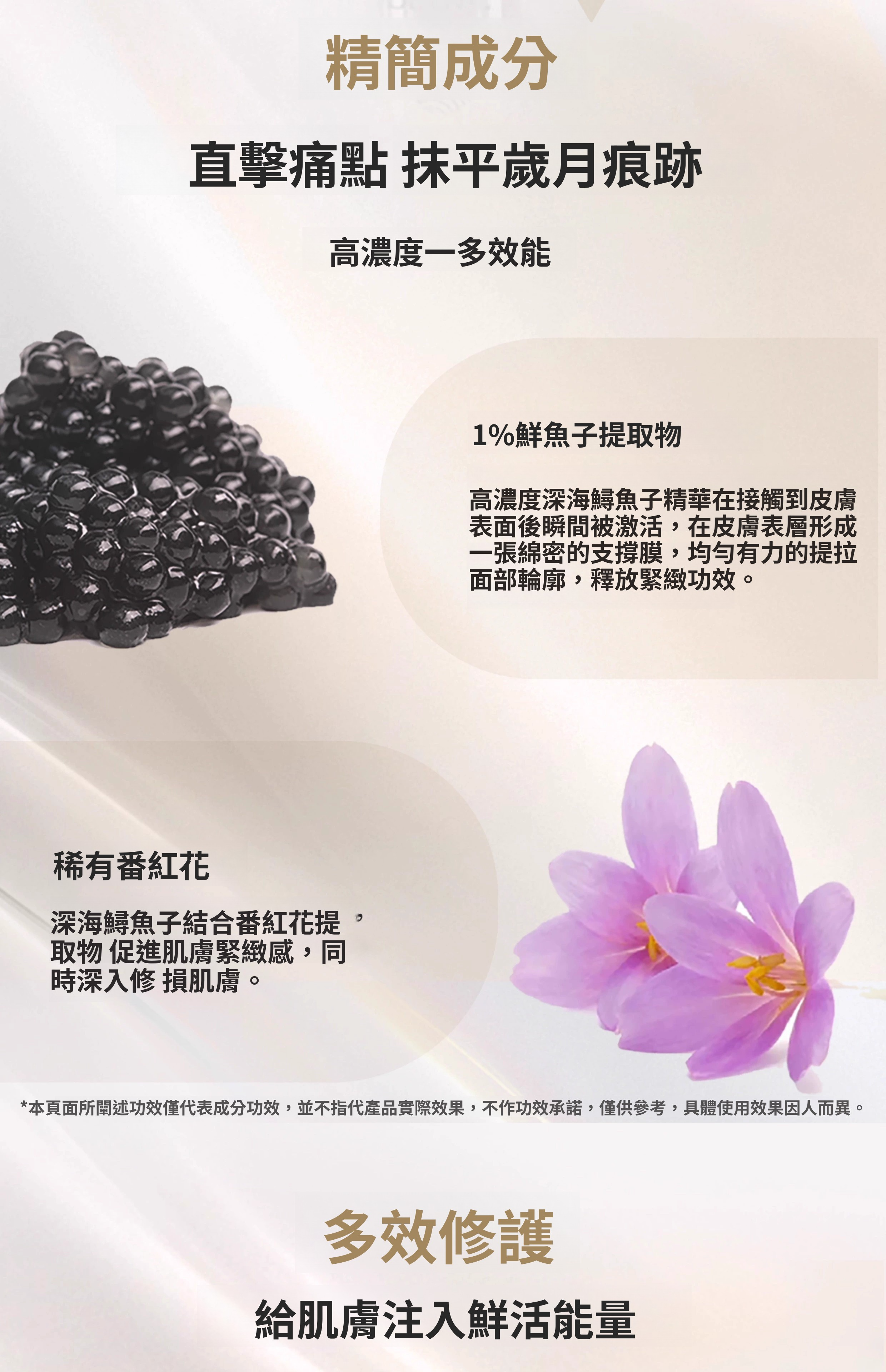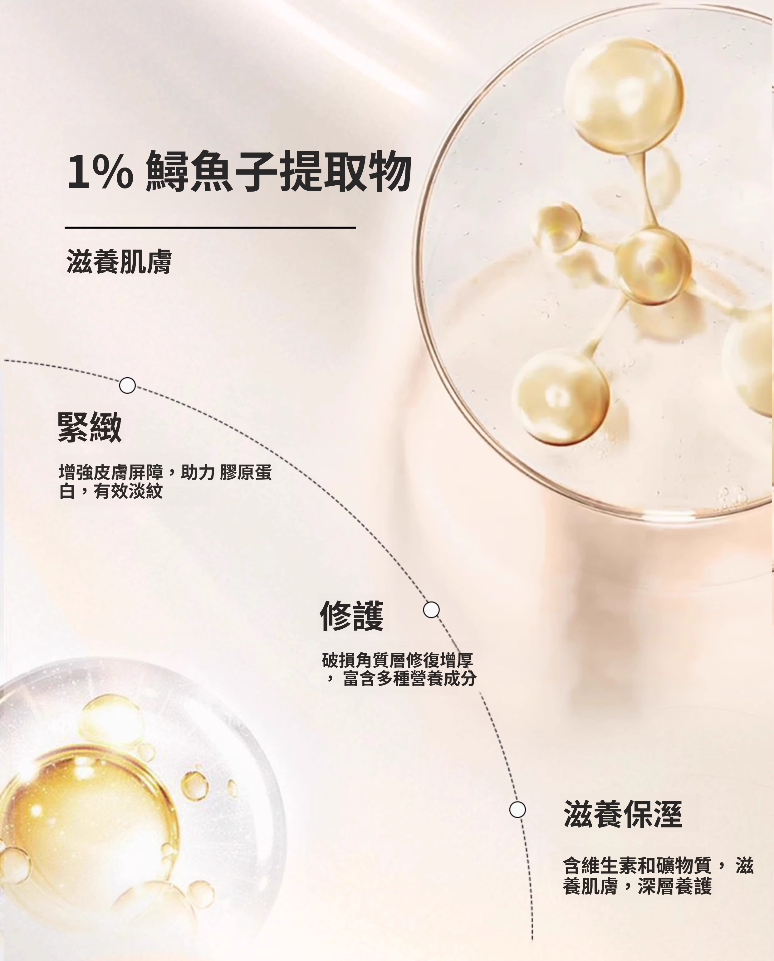 2.緊緻肌膚 提升臉部輪廓高濃度魚子精華能有效緊緻臉部輪廓滋養修護,強韌肌膚屏障