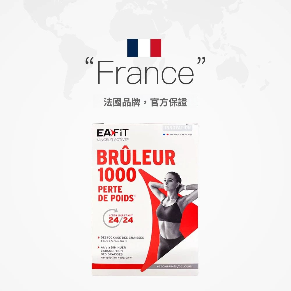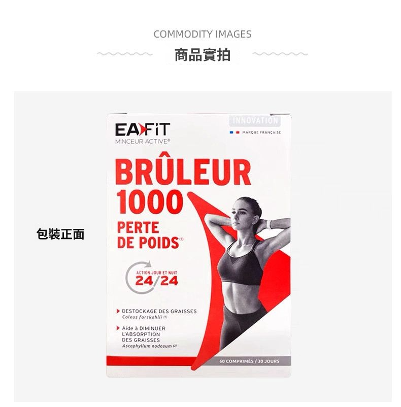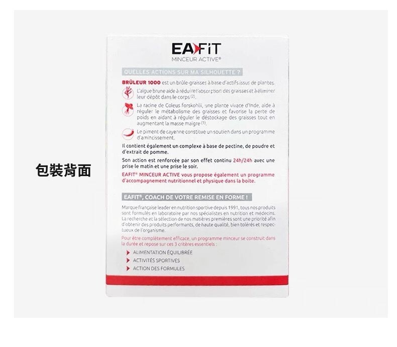 EAFiT Brûleur 1000 包裝盒內附有營養和身體支持計劃,有助於持續消除脂肪。