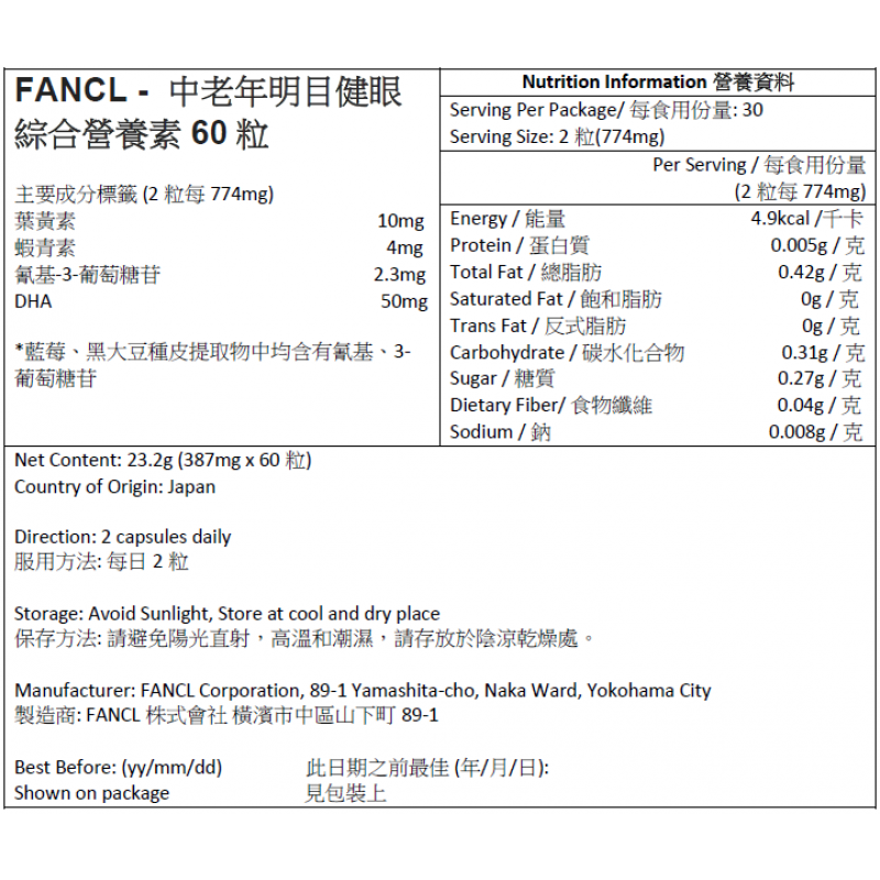 黑大豆種子皮精華及歐洲藍莓精華含有強效花青素,有助保持視力敏銳度及消除眼睛疲勞乾澀,令眼睛血管更強健。精製魚油內含的 50 毫克 DHA,配合蝦青素及葉黃素,有助保護視覺神經及視網膜,對抗藍光傷害。