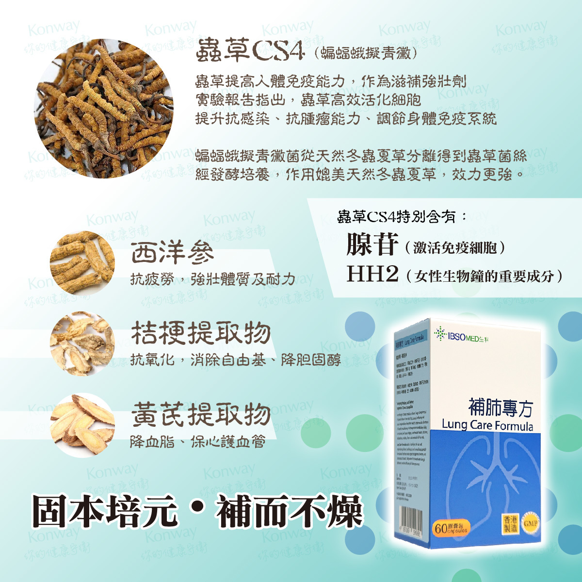 補肺專方以補益肺腎,補氣安神,為肺氣虛,腎精不足所致的虛勞氣短,身體易倦,乏力,眩量的人群而設。