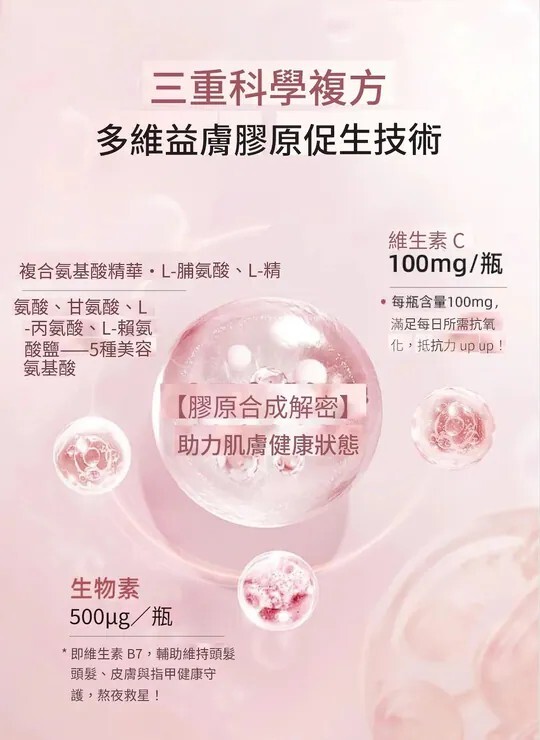 生物素,幫助維護皮膚和毛髮健康,提升活力。