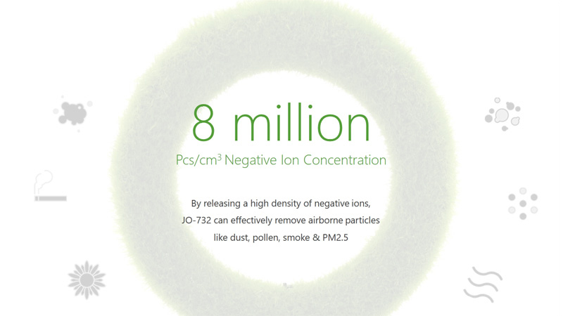 • 通過釋放高濃度氧負離子,能有效祛除粉塵、花粉、煙霧及pm2.5