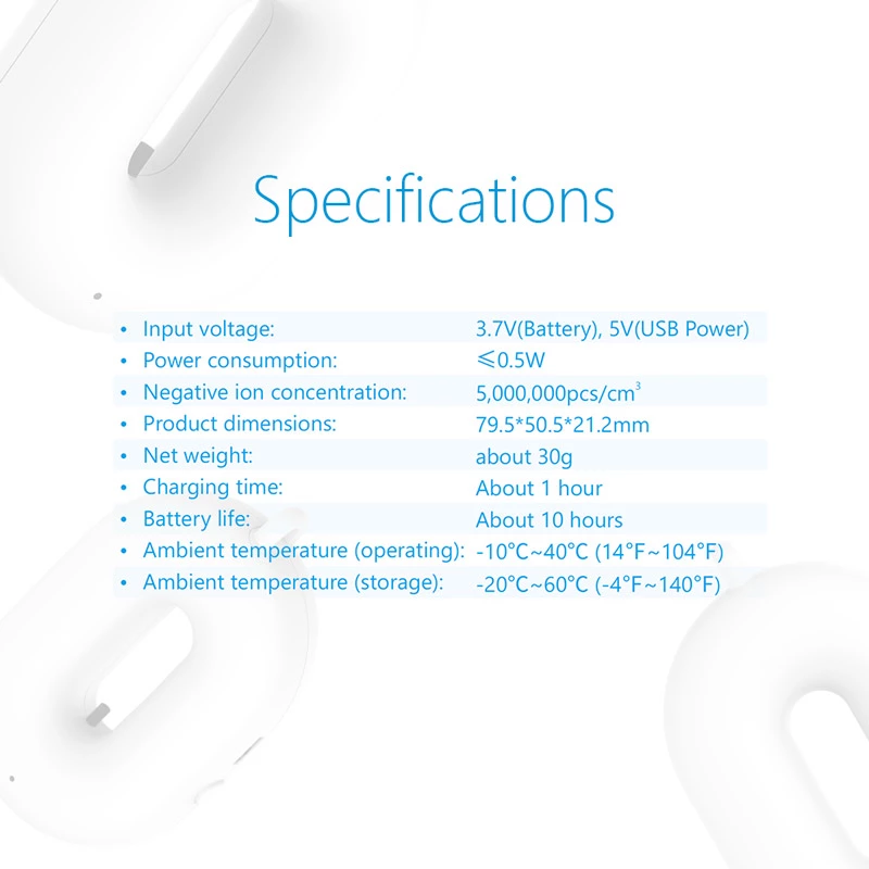•隨身清潔空氣。 它可以掛在脖子上,可以在工作時坐在桌子上,或在晚上在床頭上。