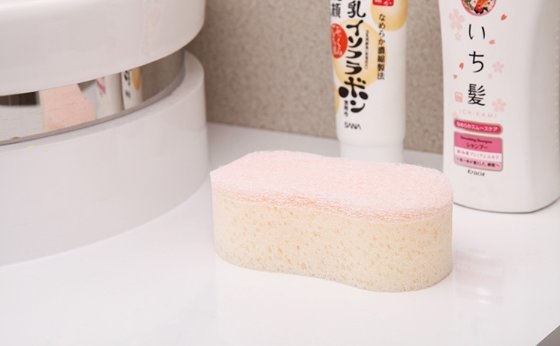 海綿很輕盈,完全沒有什麼重量,摸起來的觸感很柔軟,不會有刺刺不舒服的感覺。