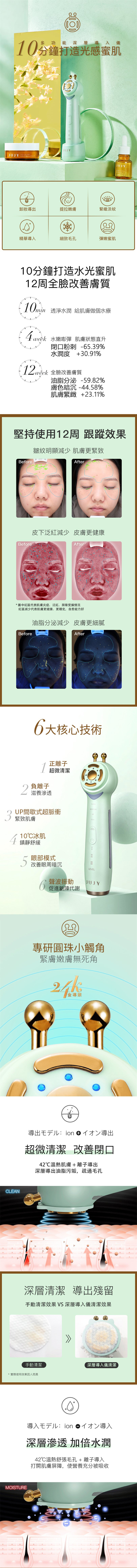 1.正負離子導入導出+清潔+瘦臉+冷熱嫩膚,另配專業眼部模式,一機用出五機功能