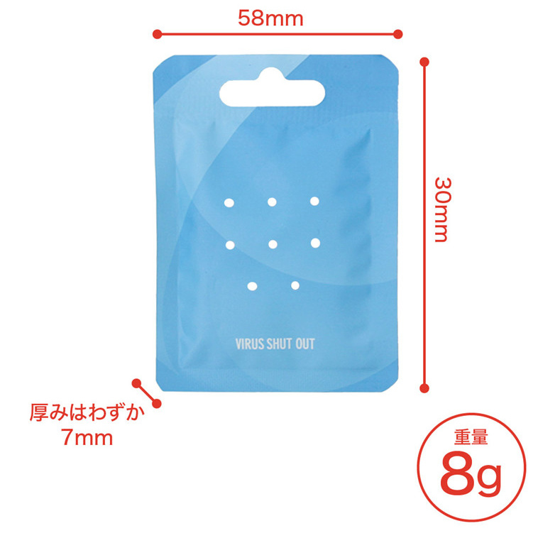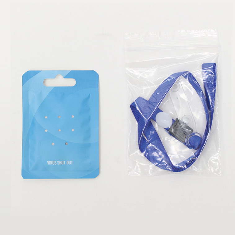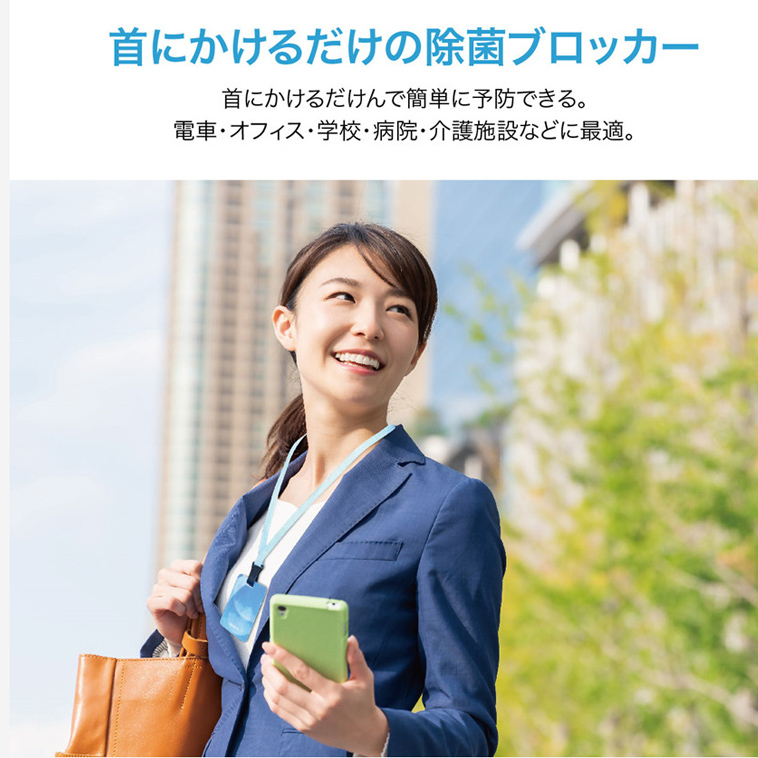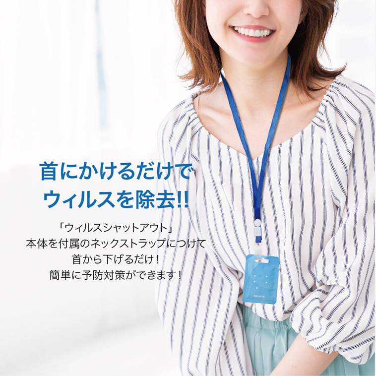 取出“ Virus Shut Out”機身 安裝到連接的頸帶上 然後掛到頸上 開封後請立即使用以確保優質功效