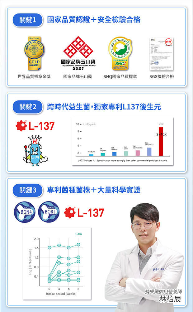 ▲跨時代益生菌,獨家專利L137後生元足量添加