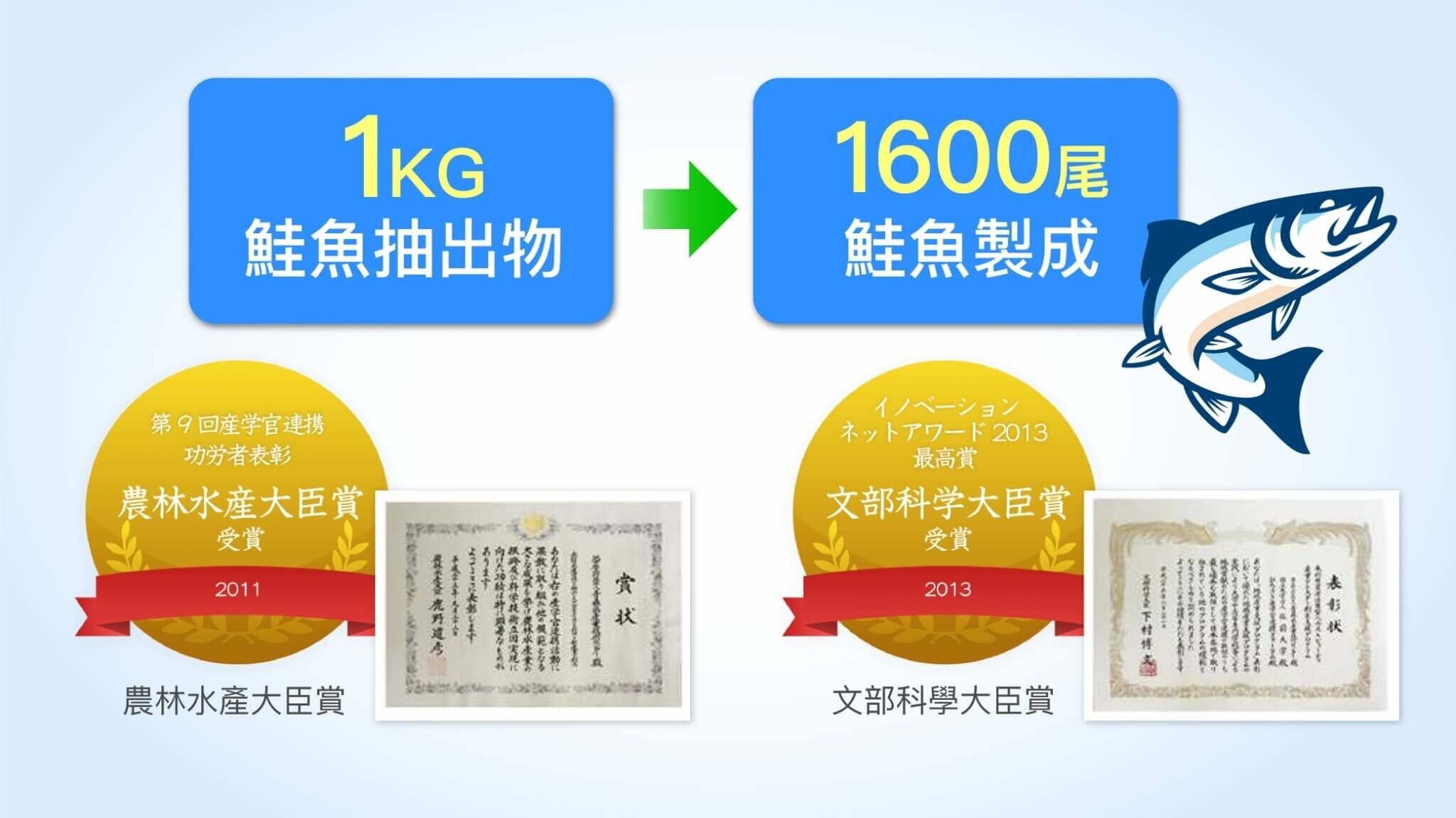 ▲專利蛋白聚醣(鮭魚鼻軟骨)50mg,榮獲日本農林水産大臣獎及文部科學大臣獎
