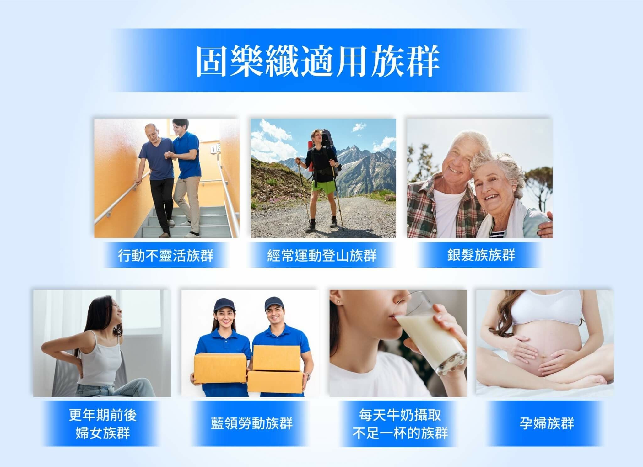 不同於業界產品單一配方為主,固樂纖DKKflex以龜鹿二仙膠為基底,搭配美國專利UCII® 高活性專利技術低溫萃取的非變性二型膠原蛋白、日本百年大廠研發的專利蛋白聚醣(鮭魚鼻軟骨)以及獨家成分DKKflex™(含天然海藻鈣、維生素D3、納豆來源維生素K2)。