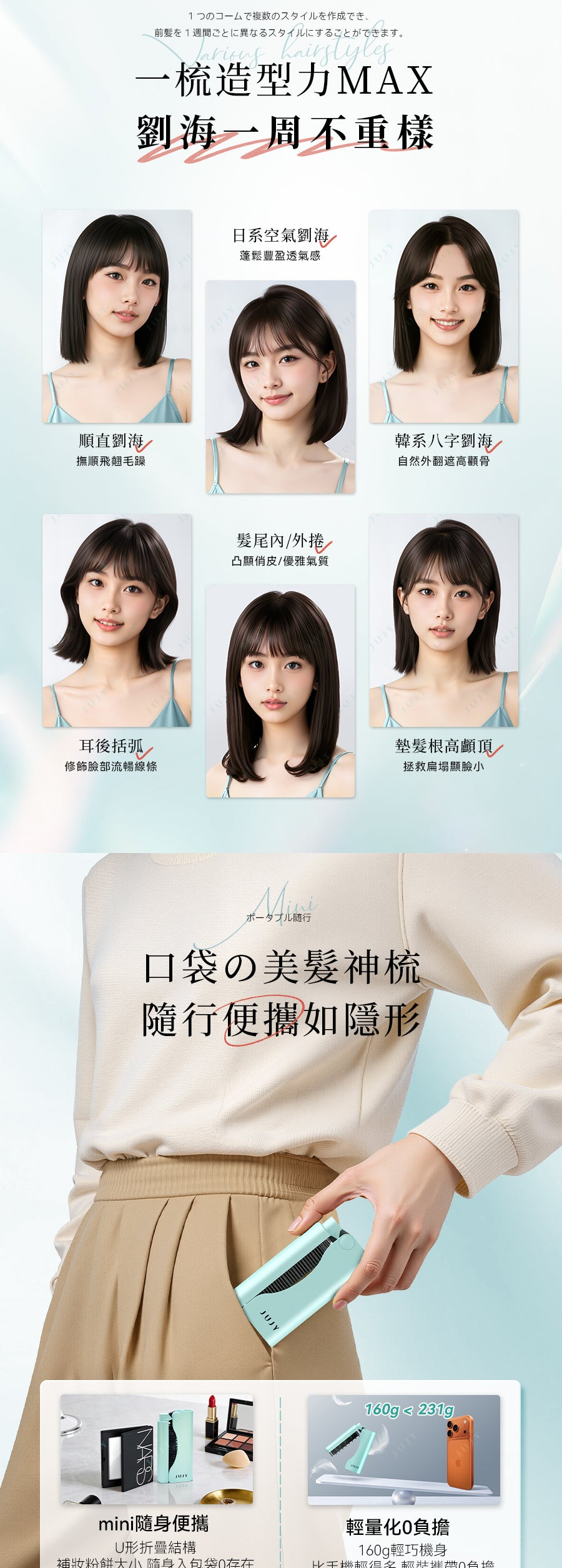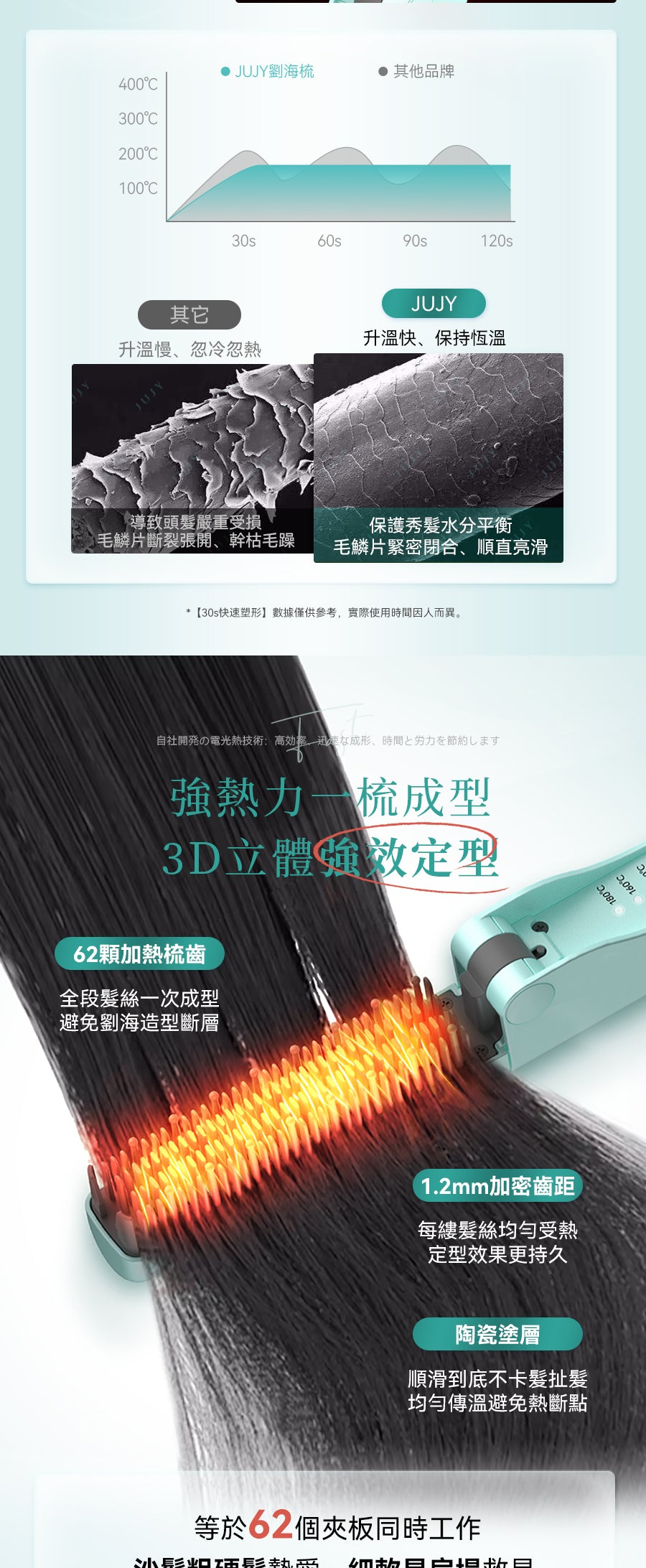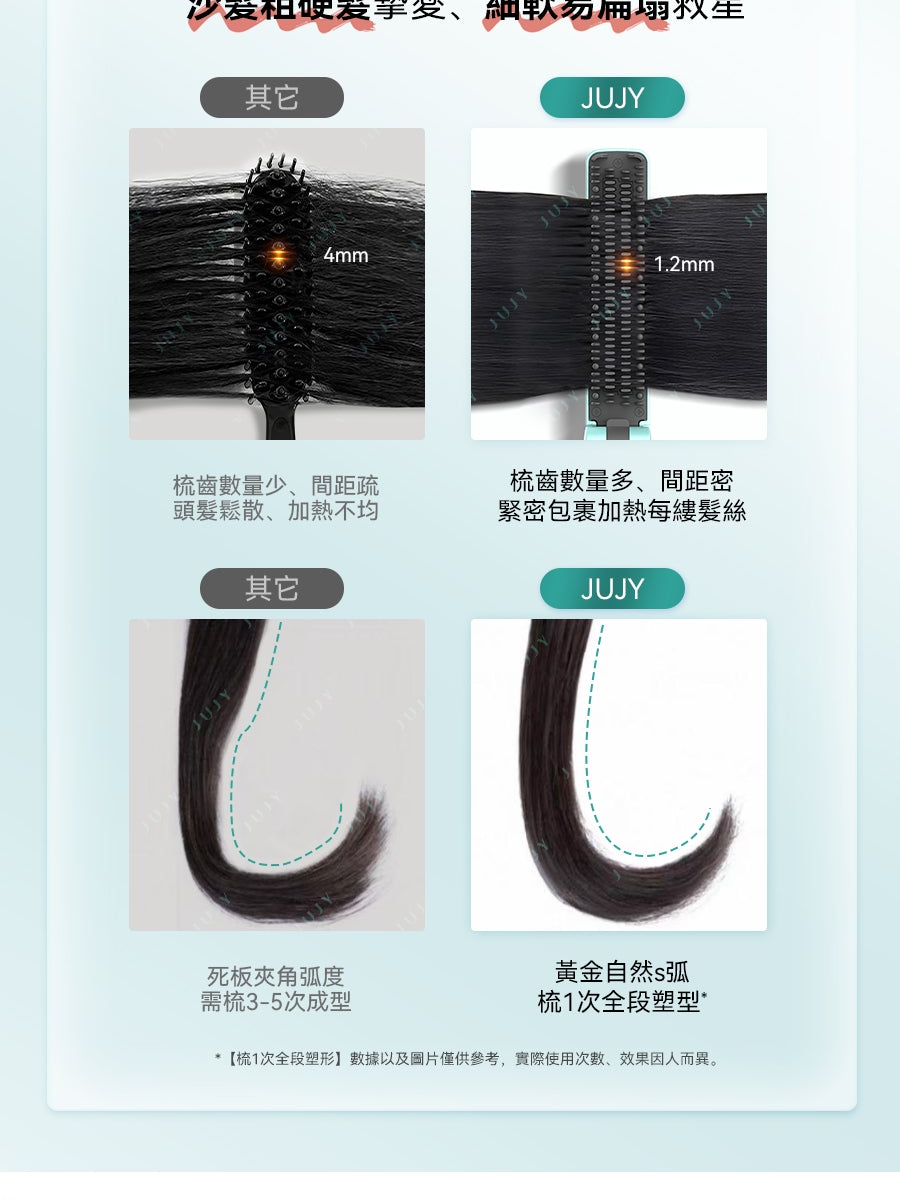5.半圓弧梳面+加密齒距,一梳自然不留折痕。
