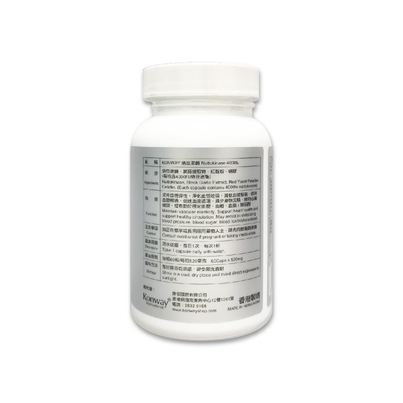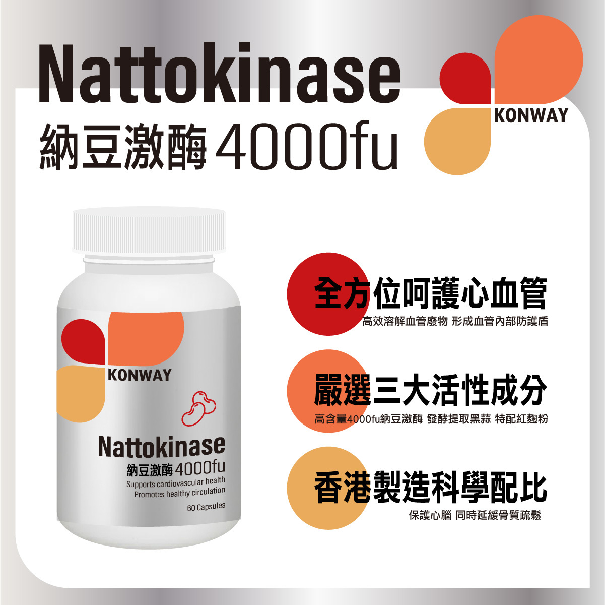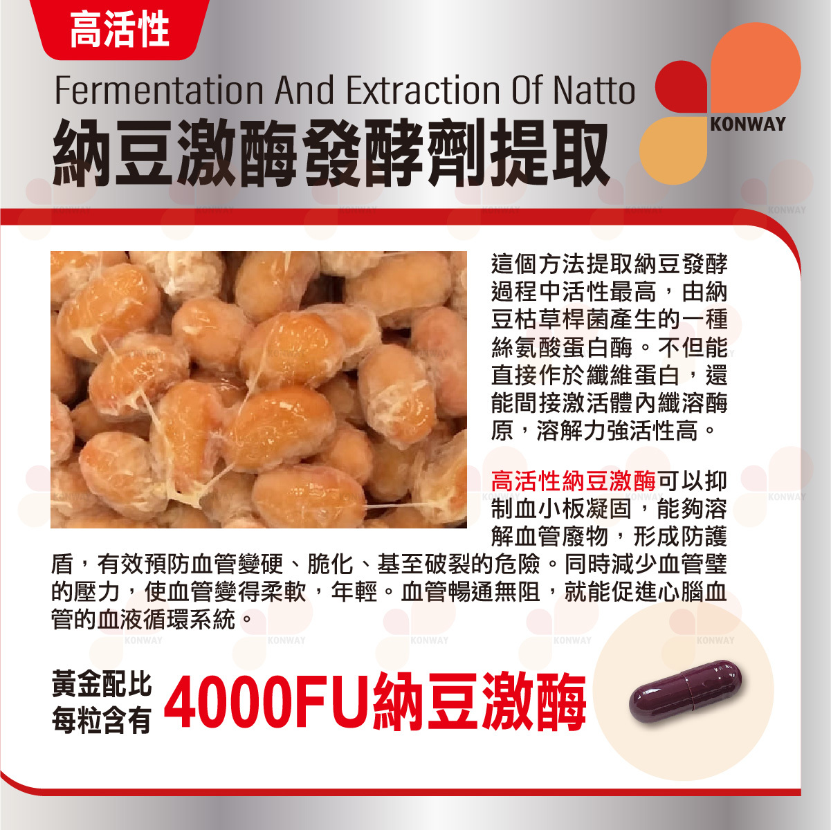 主要成份:納豆激酶,黑蒜提取物,紅麴粉(每粒含 40000FU 納豆激酶)