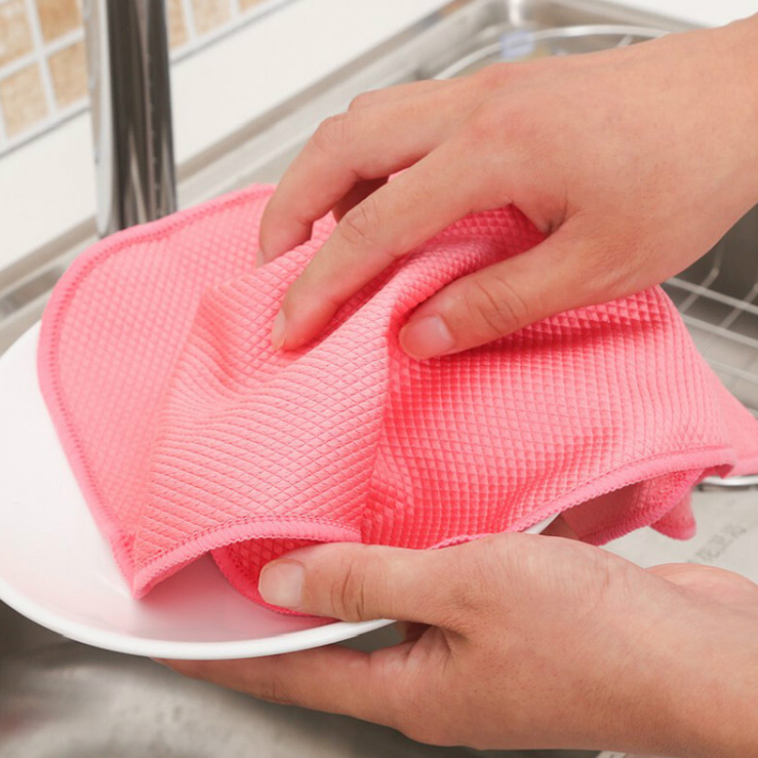 採用韓國進口超細纖維材質,不掉毛,不留痕跡,吸灰裡強,容易清洗,雙面魚鱗格子深淺不同,都能同時去掉油漬很污垢,清潔後用小量水或者清潔劑清洗即可。