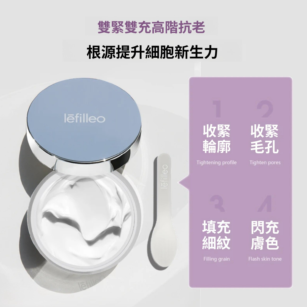 Lefilleo Regenerating White Mask(麗菲歐白晶番茄光子泥膜)。 這款營養豐富的白色泥膜可以深層清潔皮膚毛孔,促進均勻膚色,並補充皮膚膠原蛋白。