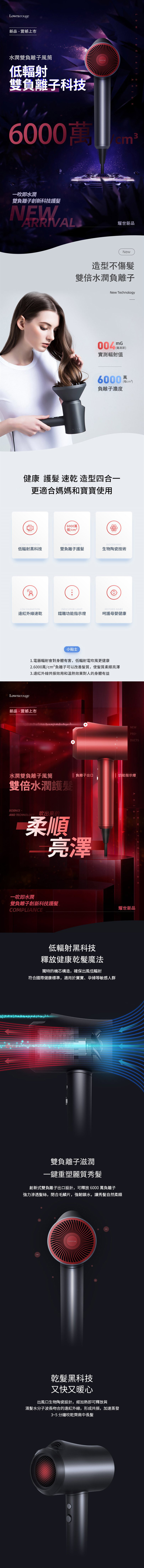 【Lowra rouge水潤雙負離子風筒】日本品牌Lowra rouge【正品】✔雙噴口負離子發射 ✔6000W負離子更好附著於頭髮表層 ✔紅外線速乾 ✔恆溫護髮 ✔.螺旋入風口風柵【原裝行貨1年原廠保養】