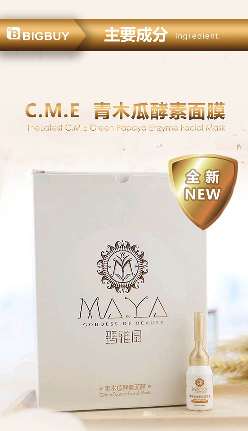 瑪雅風護膚產品榮獲多項專業認證,安全可靠,其皇牌產品C.M.E青木瓜酵素面膜解決多重肌膚問題,具抗皺保濕、促進肌膚新陳代謝、收縮毛孔、亮白抑制黑色素、自我防護及修護功能。