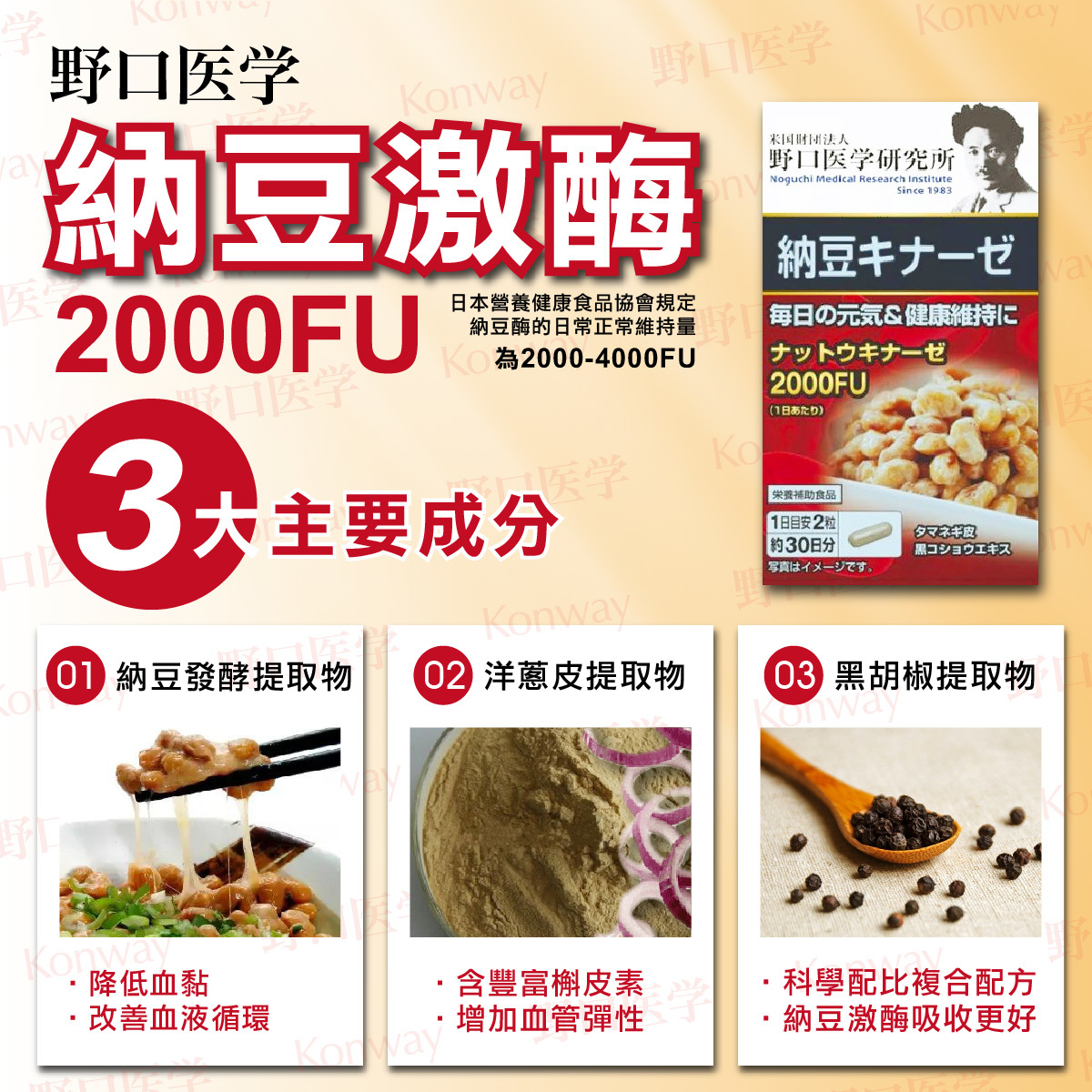 日本人的長壽秘訣歸功於「納豆」,大豆經由納豆菌的發酵作用變成黏黏的納豆,而納豆激酶就是納豆裡面所含眾多天然酵素的其中一種,具有支援血管暢通及心臟健康、益壽養生之效。