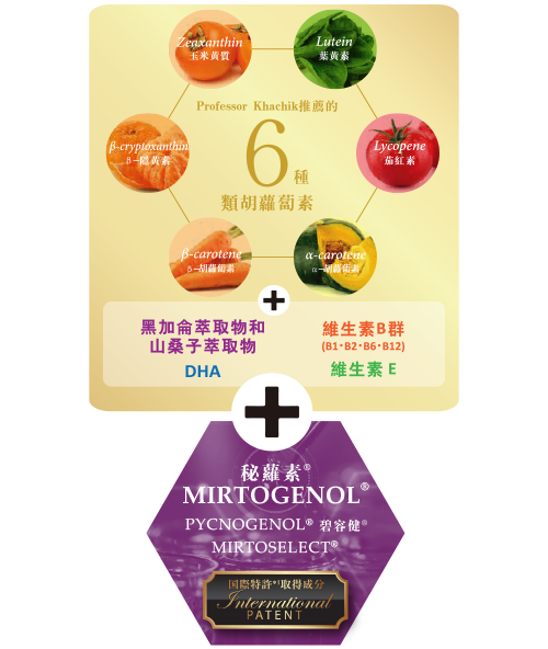 結合擁有黃金配方的「識霸」以及國際專利*2認證的「秘蘿素®」,採用類胡蘿蔔素研究領域的佼佼者—Professor Frederick Khachik的獨特配方,成為綠加利在複合類胡蘿蔔素營養補助食品中的明星商品。