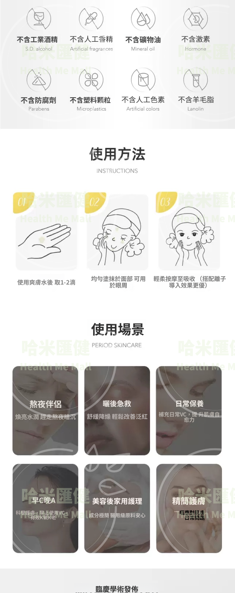 中性(pH6-7)的VC精華液,適用於敏感肌膚。