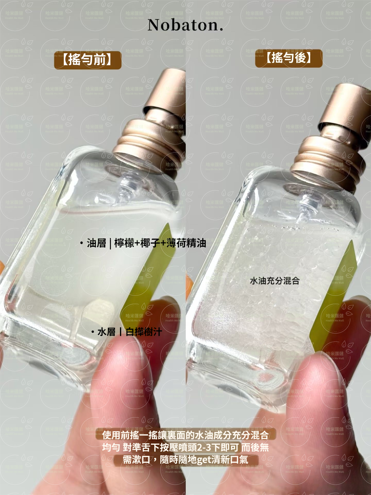 將噴嘴對準口腔,按壓噴頭2至3次。用後無需漱口。首次使用前,請先按壓噴頭2至3次,以釋放空氣。
