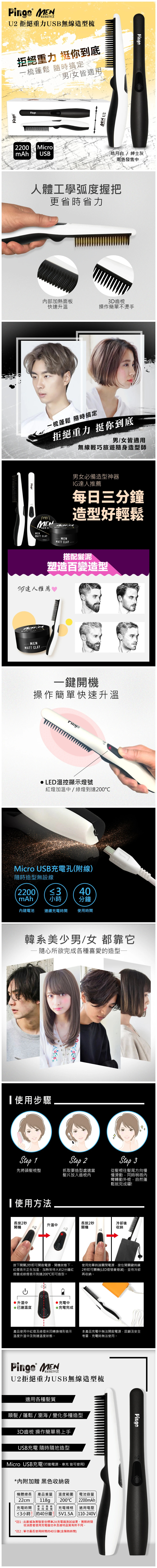 型號名稱:台灣PINGO MEN U2拒絕重力USB無線造型梳