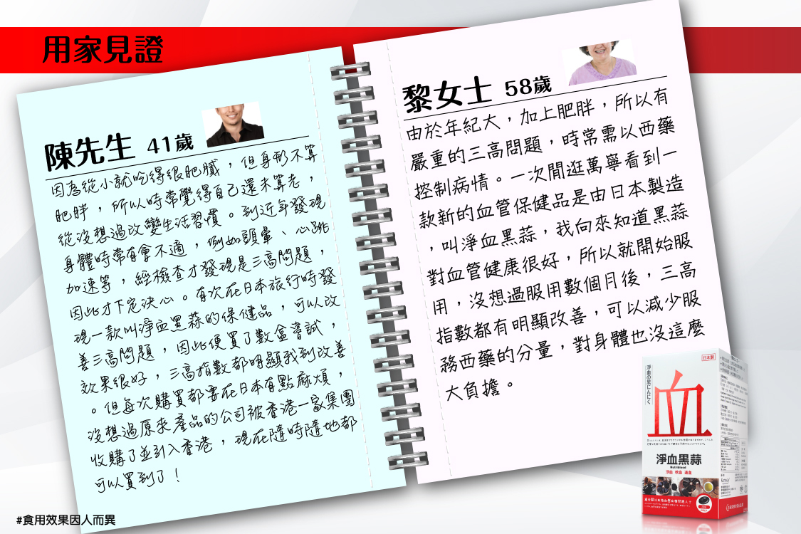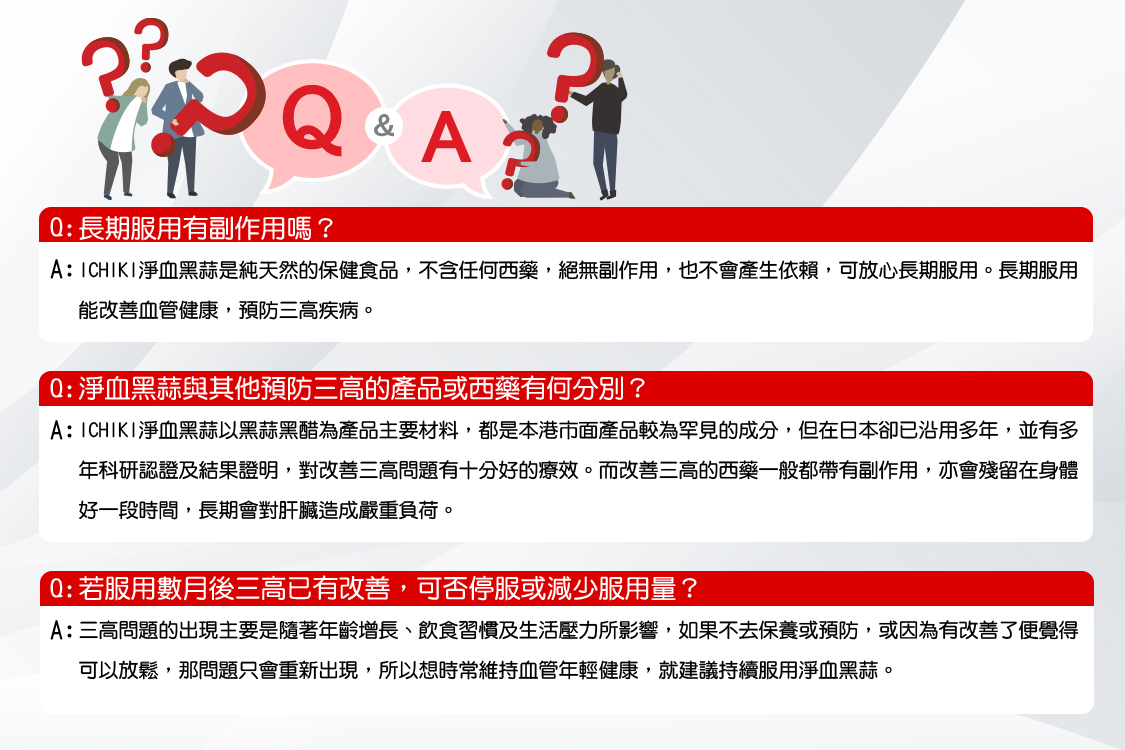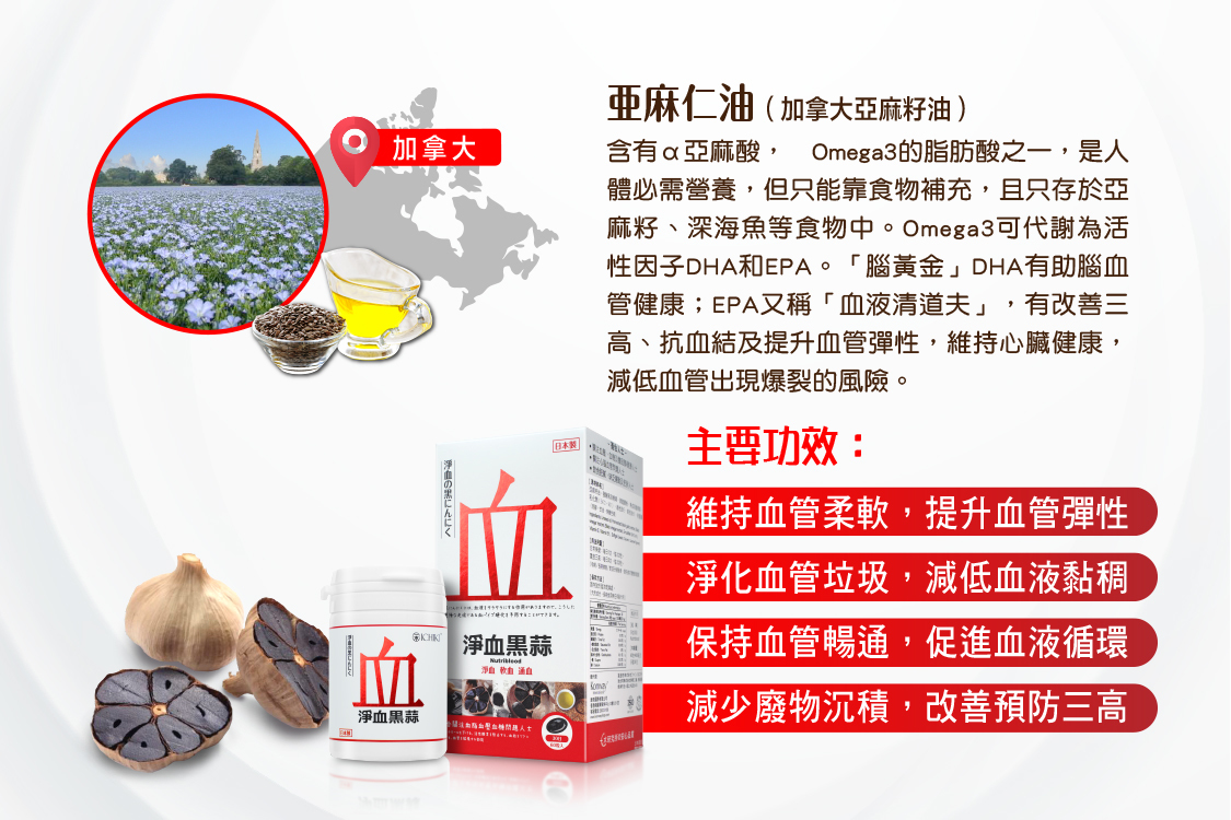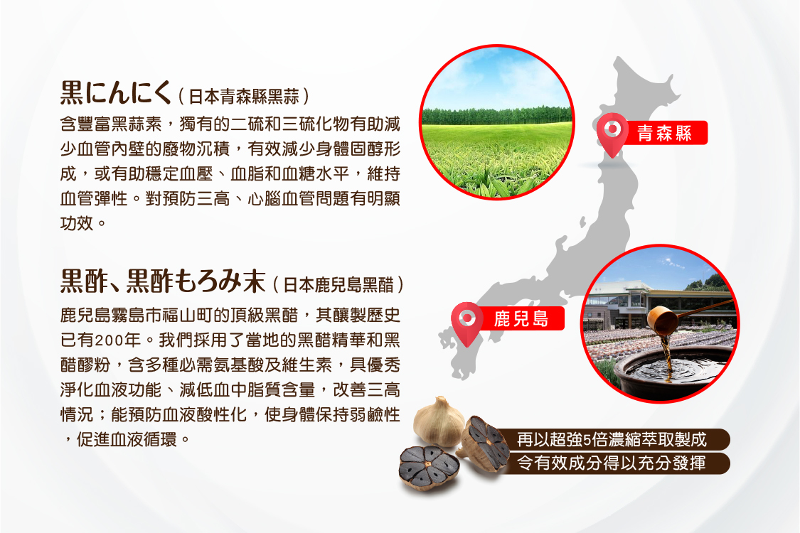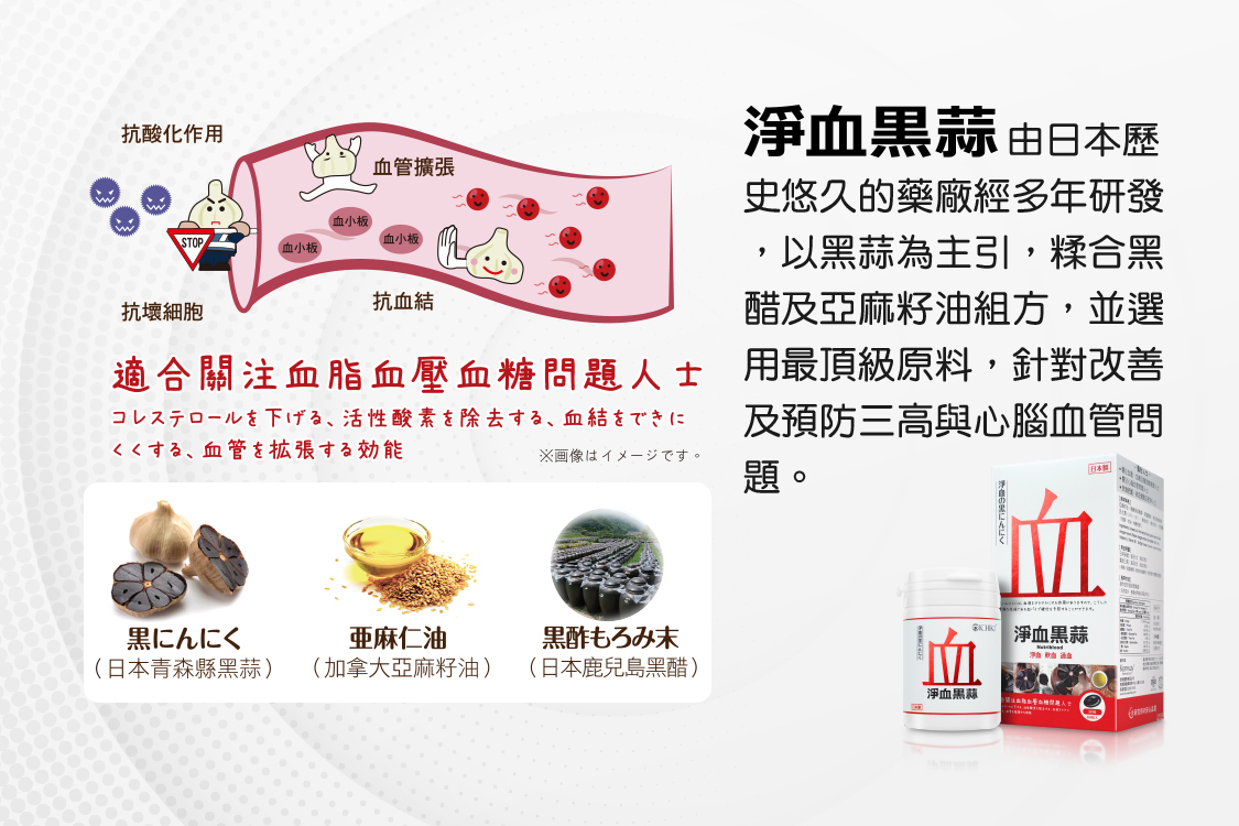 來自東洋的抗三高配方!黑蒜及黑醋是大和民族祖傳的護心秘方,據說兩者都有增加血管彈性、阻礙膽固醇形成及清理血管垃圾的功效。ICHIKI一木研究所淨血黑蒜成份天然,選用日本最珍貴的青森縣黑蒜—「福地白六片種生蒜」、鹿兒島霧島的頂級黑醋及加拿大有機亞麻籽油。糅合日本傳統護心食品及西方健康食物新貴亞麻籽油,ICHIKI獨家的守護血管配方,有效增加血管彈性、減少血管垃圾積聚,達到改善三高的效果。整個開發、生產、檢測及包裝都於日本進行,保證100%全日本製,同步於香港全線萬寧發售,絕對係信心保證!每日兩粒,心血管一齊靚晒!