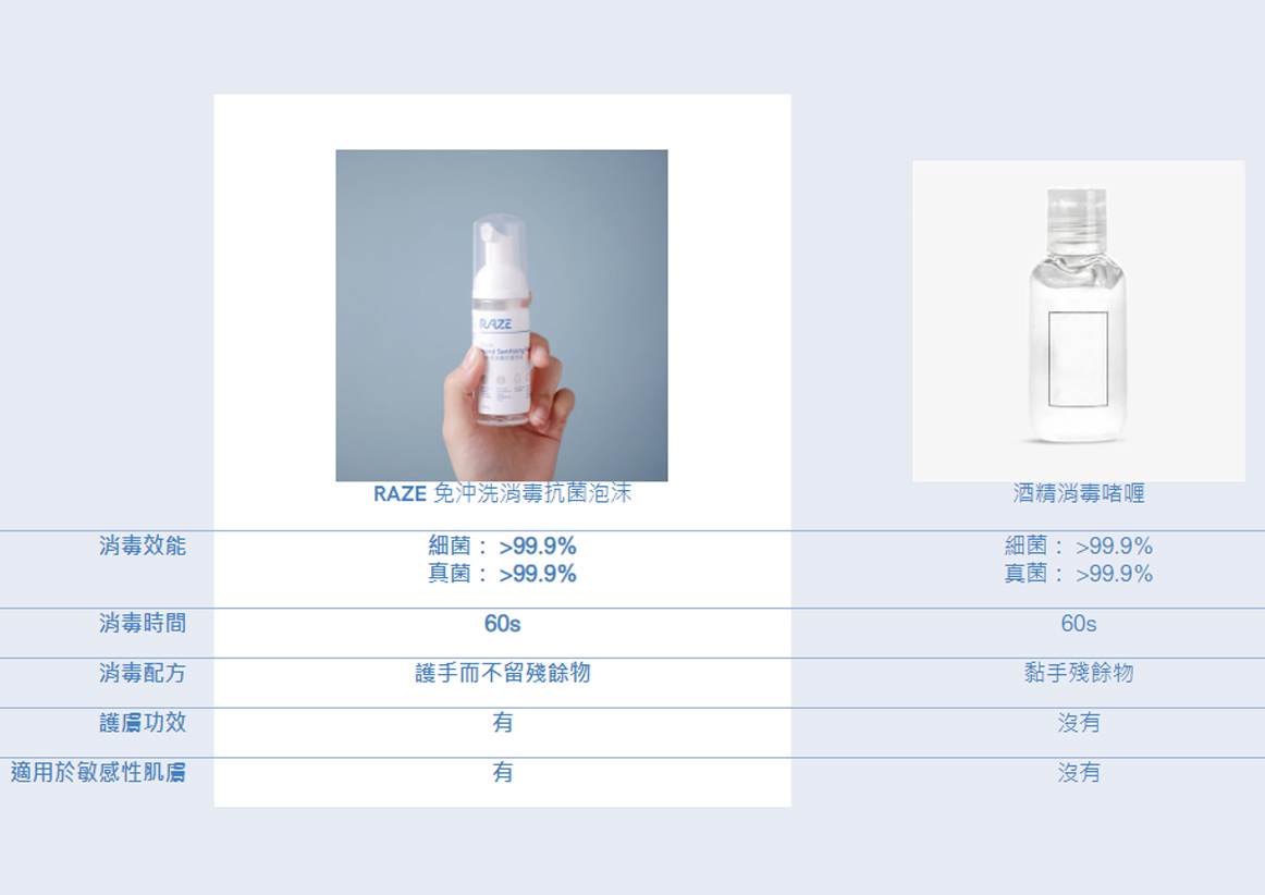 Raze 免沖洗消毒泡沫, 隨地一泵,隨時消毒!