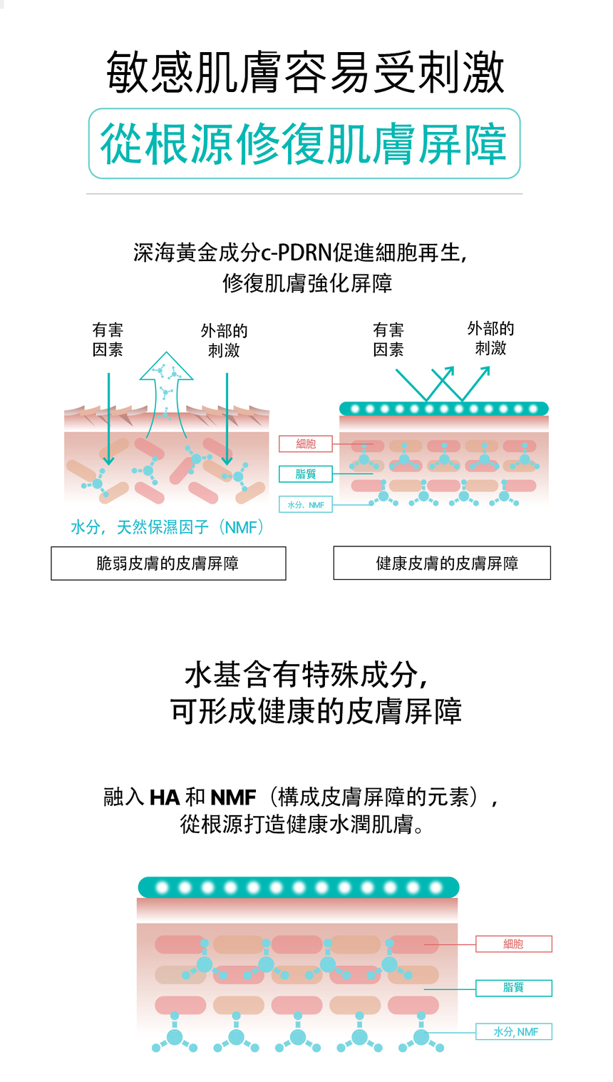 從東海三文魚DNA中提取的c-PDRN成份,從根源修護受損細胞