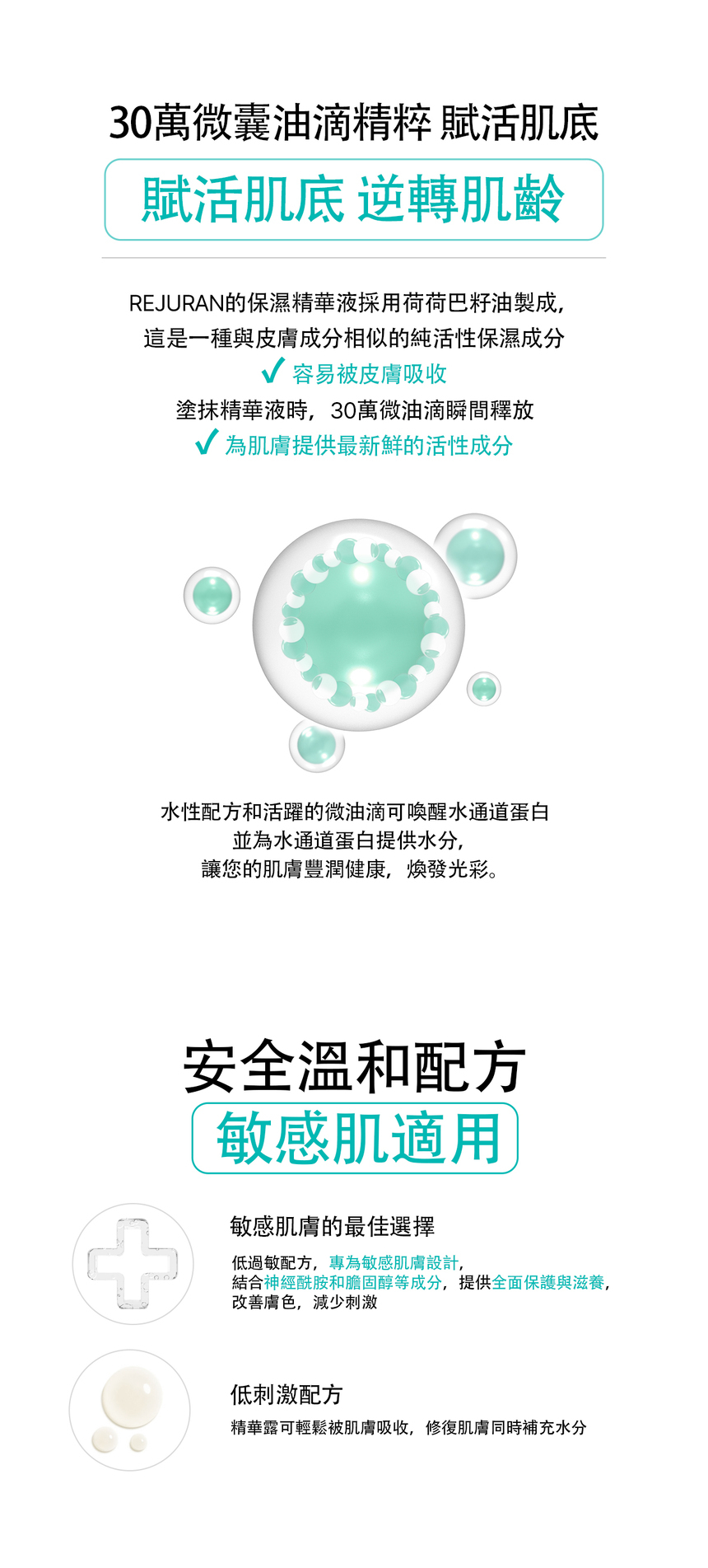 Micro Oil Drop配方,增加滲透力同時防止肌膚水份蒸發