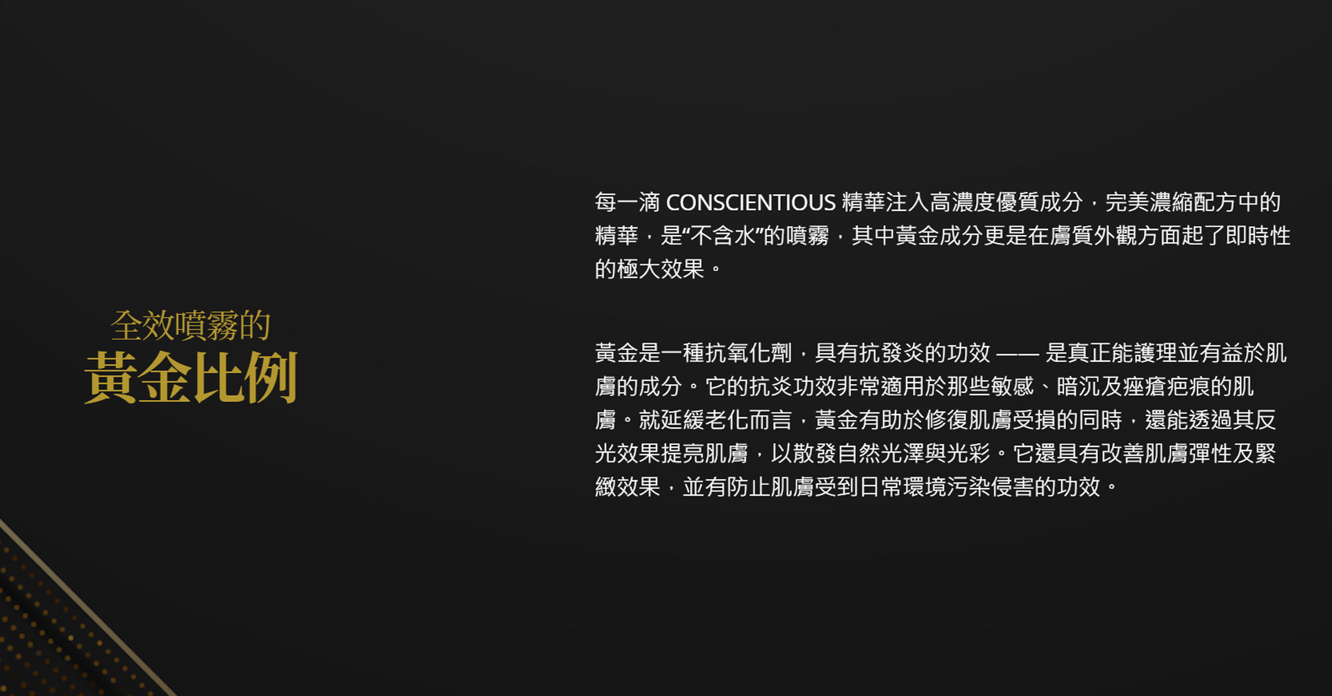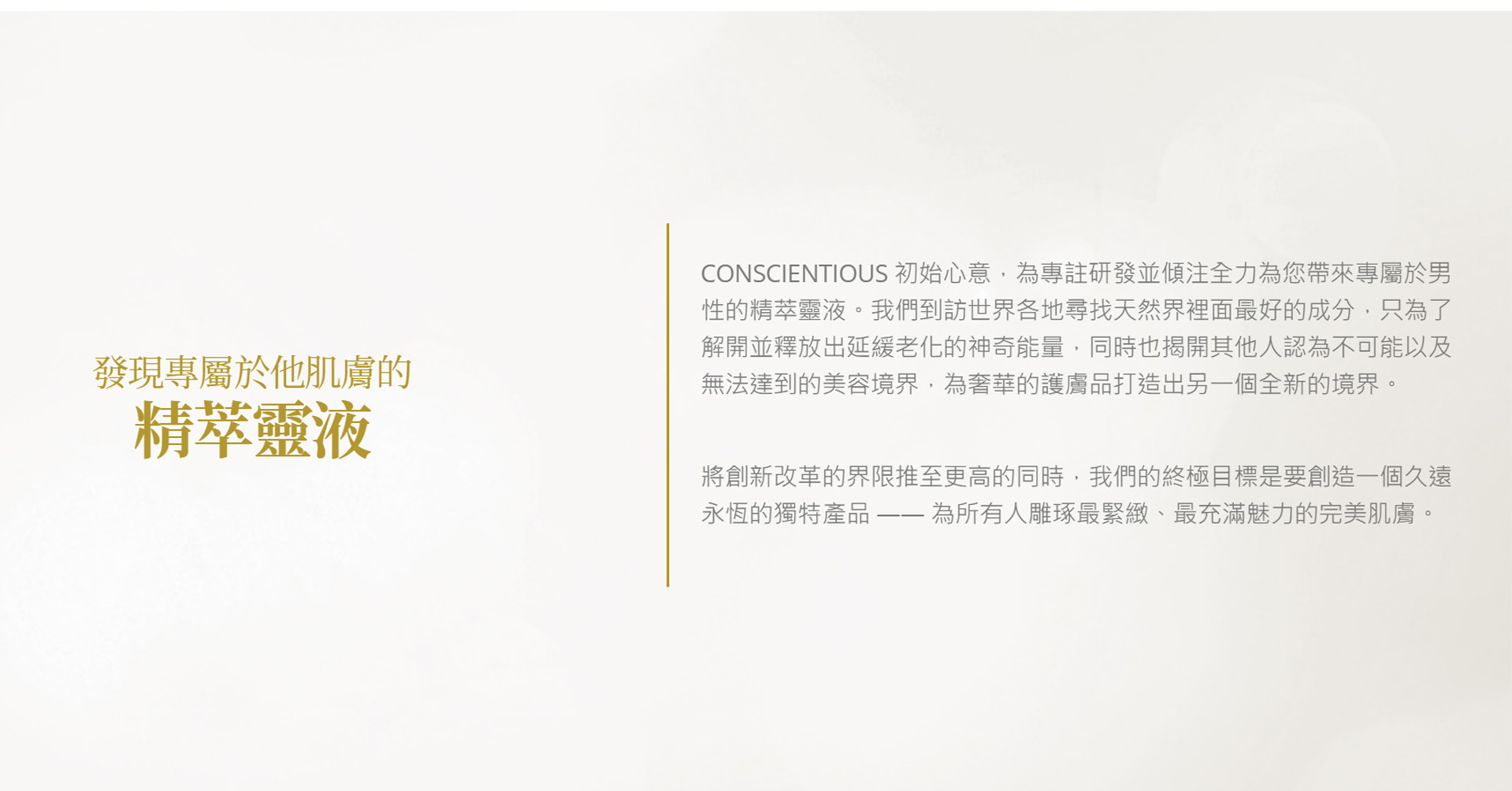 每一滴 CONSCIENTIOUS 精華容納了最優良、最純粹以及全植物配方的高效濃縮成分,給予肌膚天然界當中最好的萃取精華。