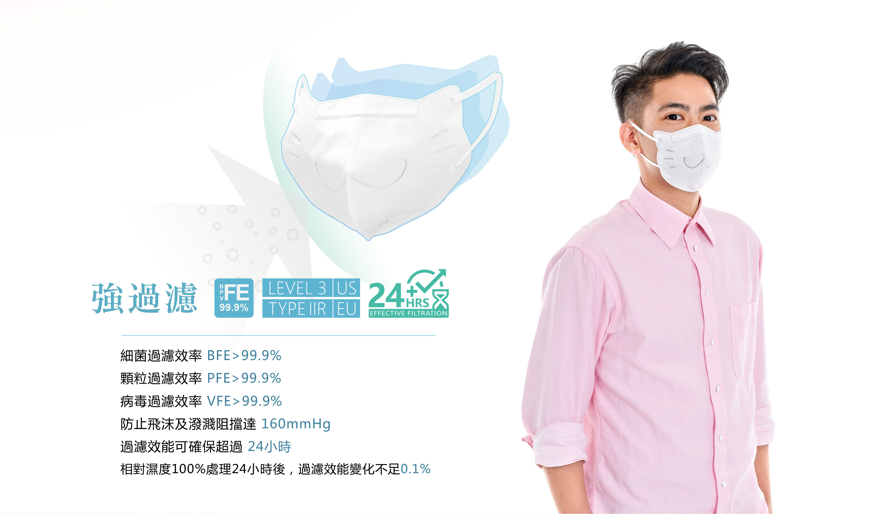 細菌過濾效率 BFE>99.9%