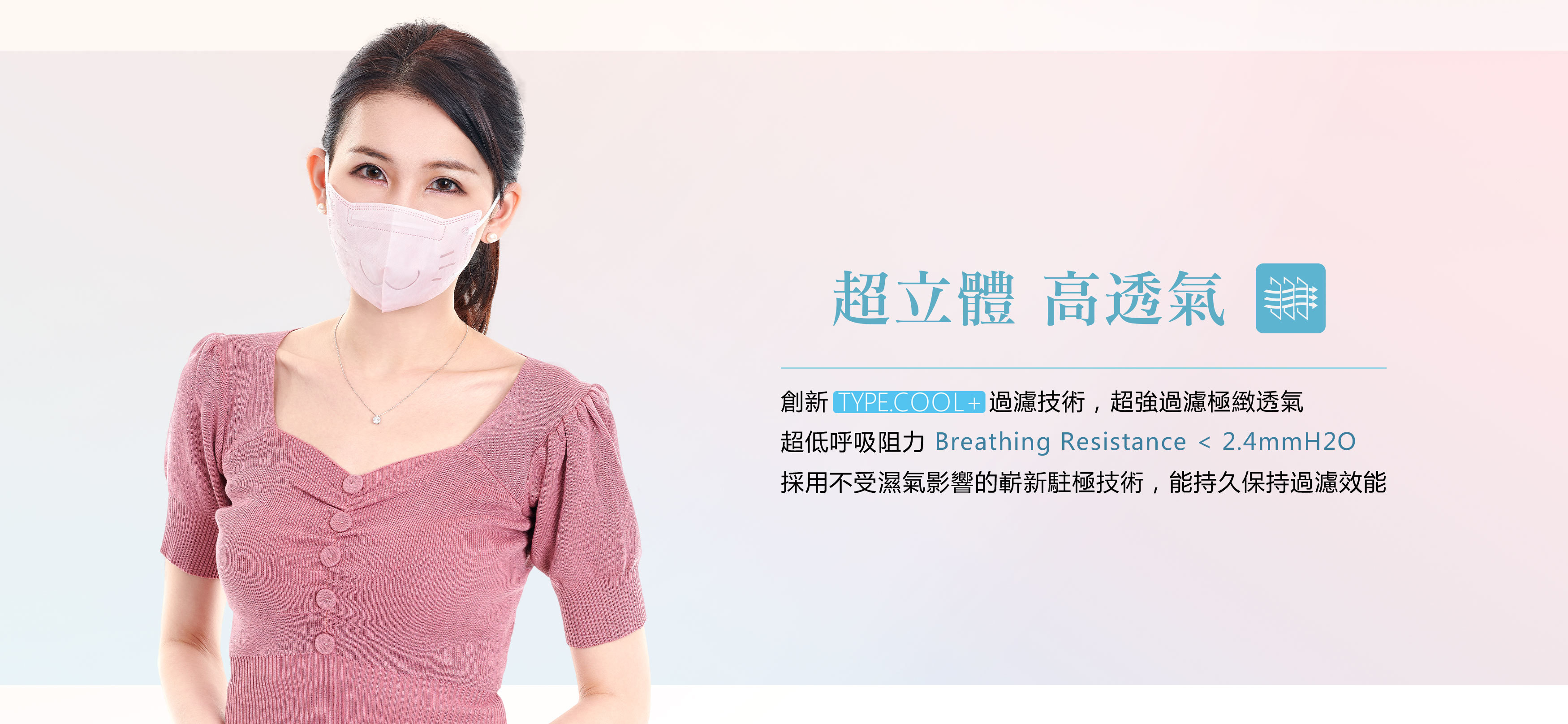 創新Type.Cool+過濾技術,超強過濾極緻透氣