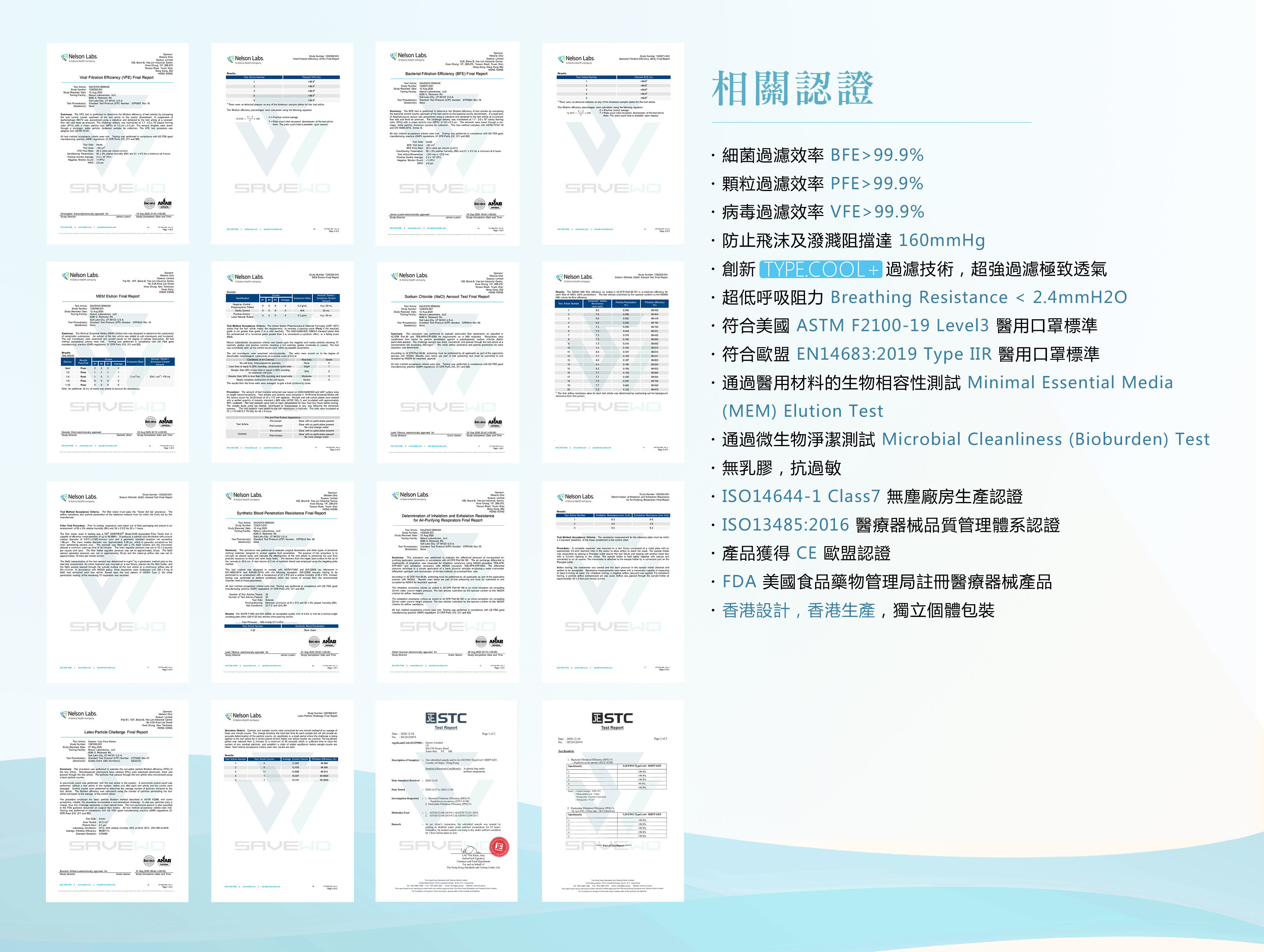 符合美國ASTM F2100-19 Level3 醫用口罩標準