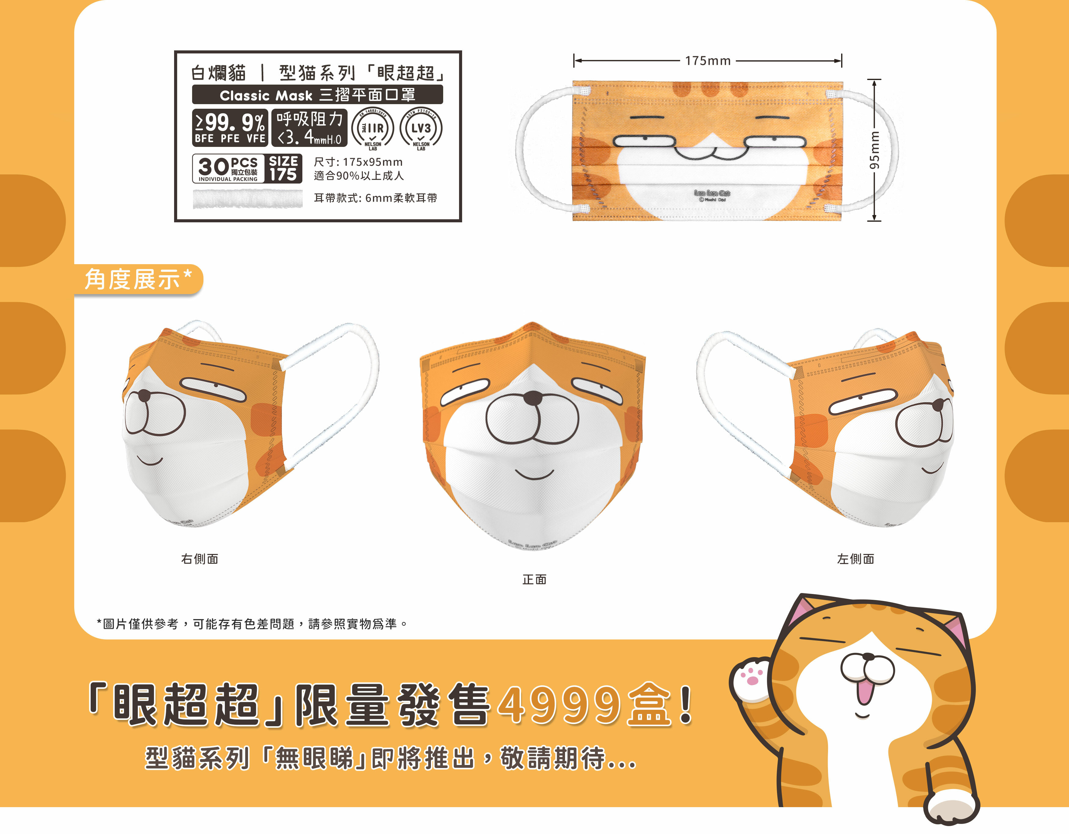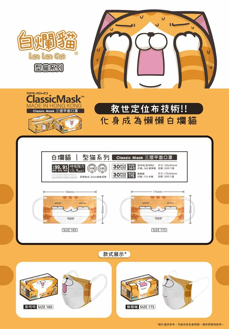 SAVEWO X 白爛貓 型貓系列「眼超超」三摺平面口罩