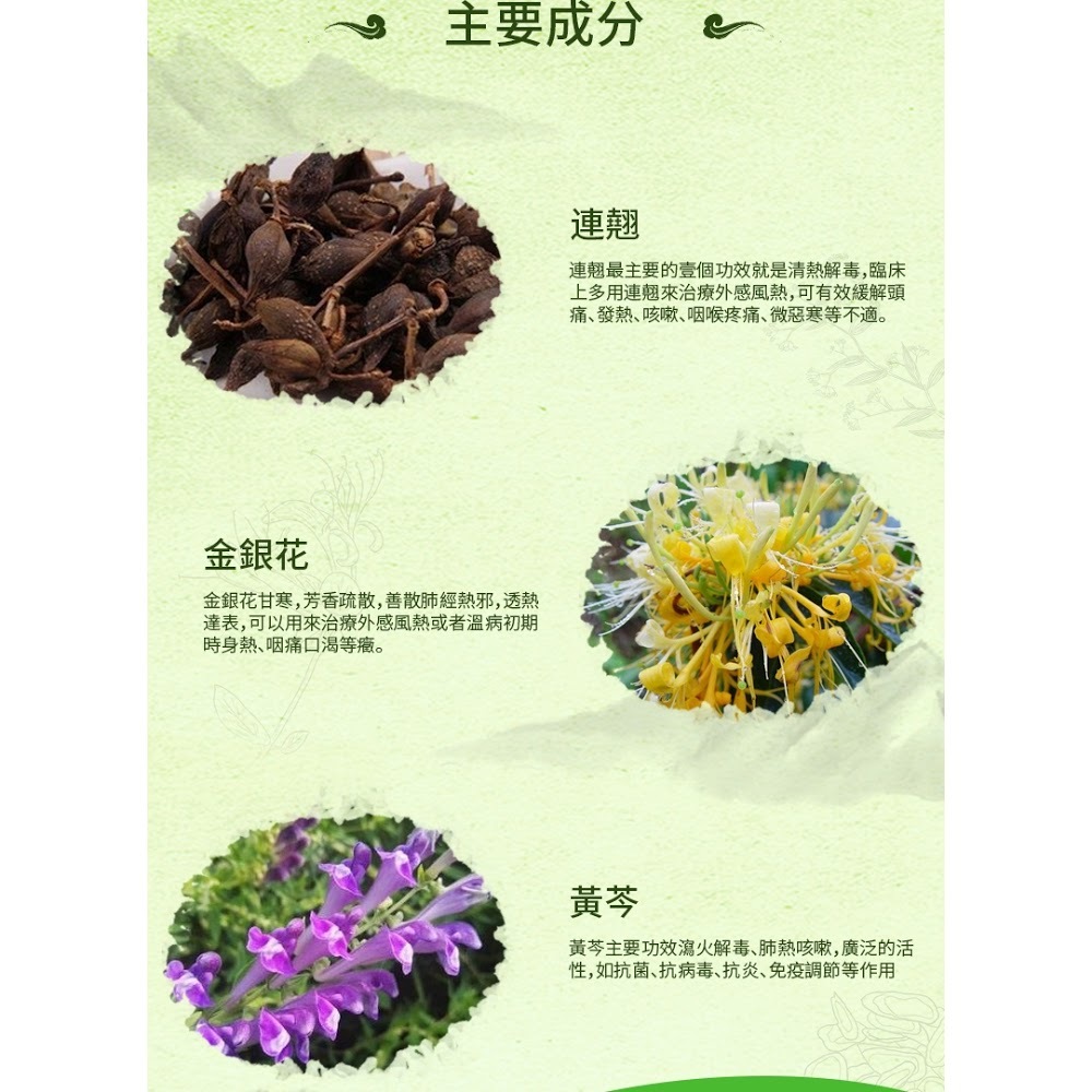 說明:作用於外感風熱所致的感冒,幫助緩解感冒引起的發熱,咳嗽,咽痛。