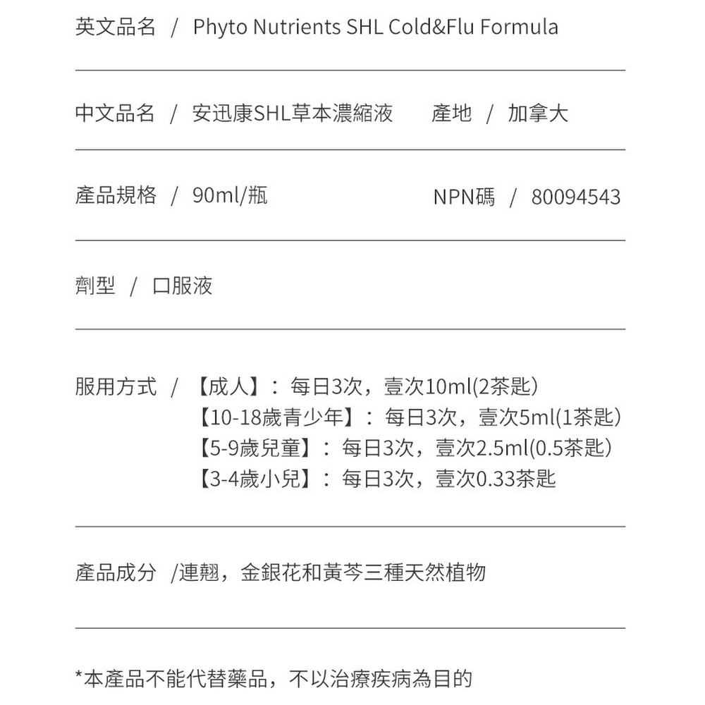 SHL雙黃連超濃縮液90ml【正品】安迅康 (加拿大提取技術及生產)✔作用於外感風熱所致的感冒 ✔幫助緩解感冒引起的發熱,咳嗽,咽痛 正貨 ShuangHuangLian