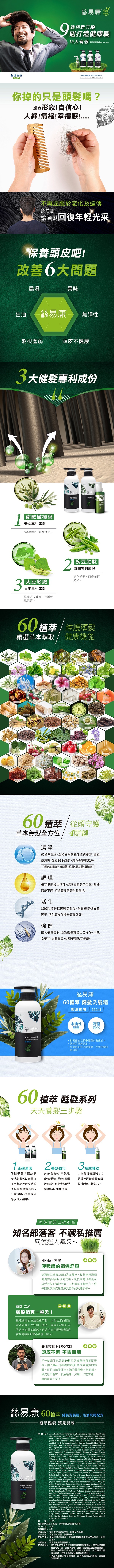 選用60種珍貴草本植物精華搭配綜合維他命及清新複合草本精油,不含矽靈及蠟等易殘留物,強健髮根的第一步,從打造健康的頭皮開始。