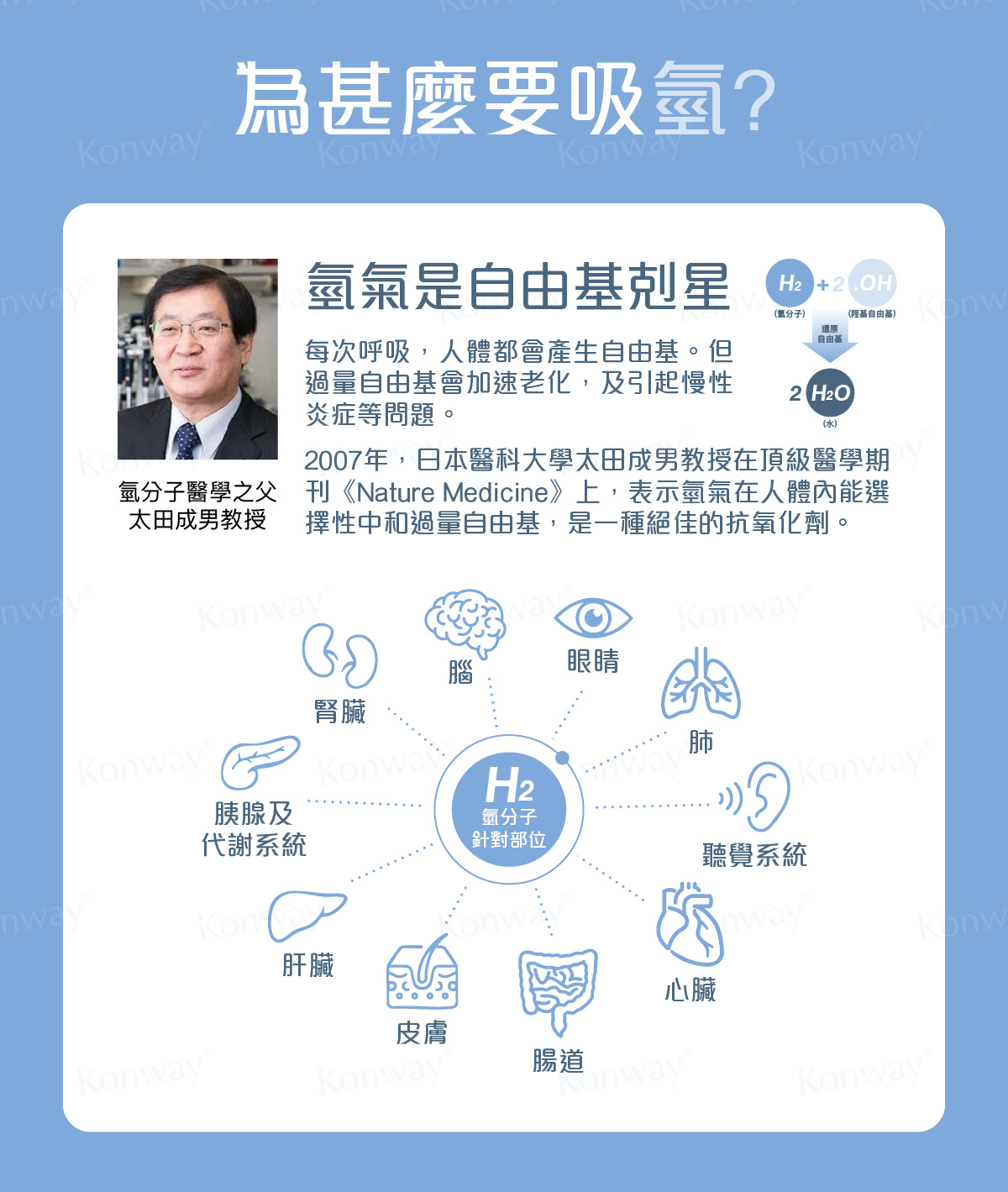 高純度氫氣十大效果 (以3個月每日吸氫30分鐘為基礎)