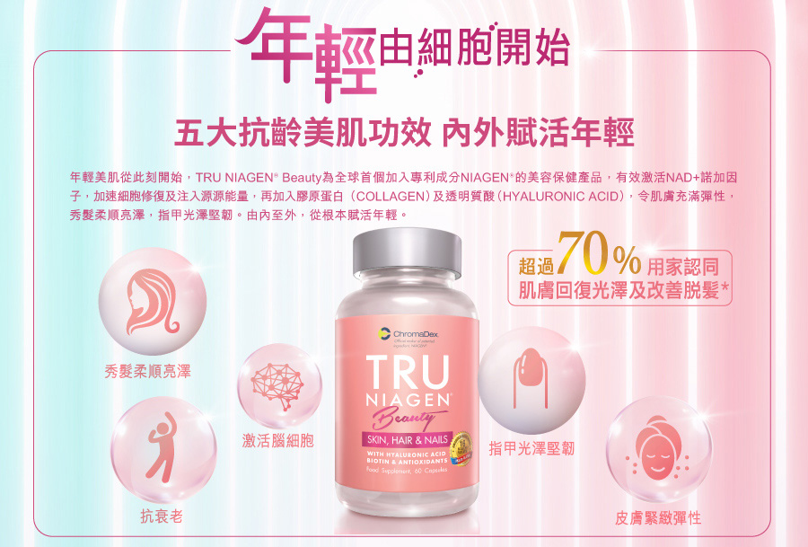 樂加欣Beauty【活齡美肌配方】 Beauty Tru Niagen【正品】有效提升NAD+諾加因子水平,皮膚緊緻彈、秀髮亮澤 指甲堅韌、抗衰老