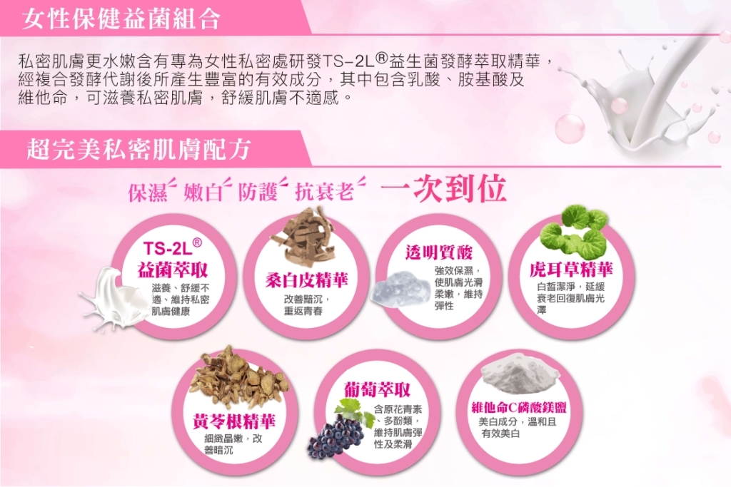 一支造到保濕、嫩白、防護、抗衰老的功效,讓私密處回到青春少艾時