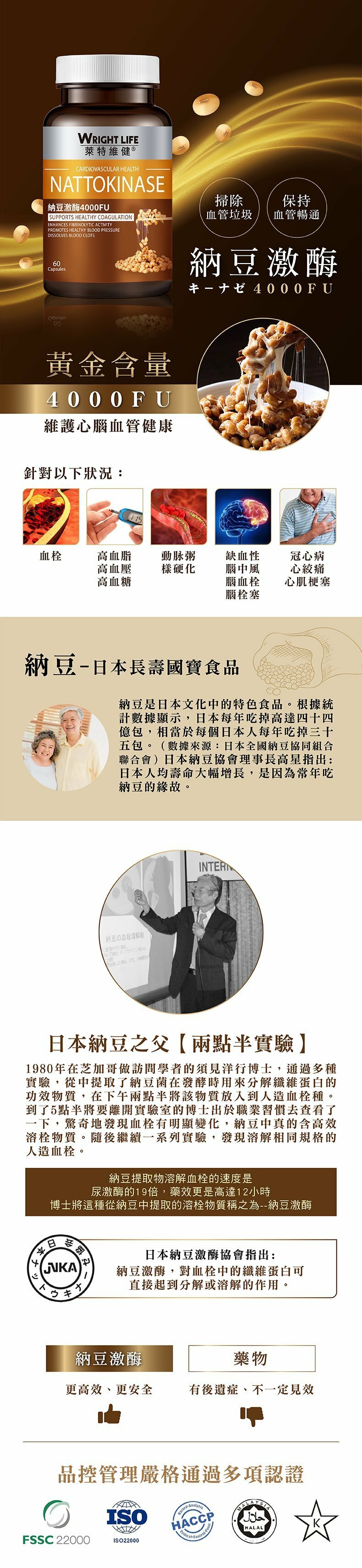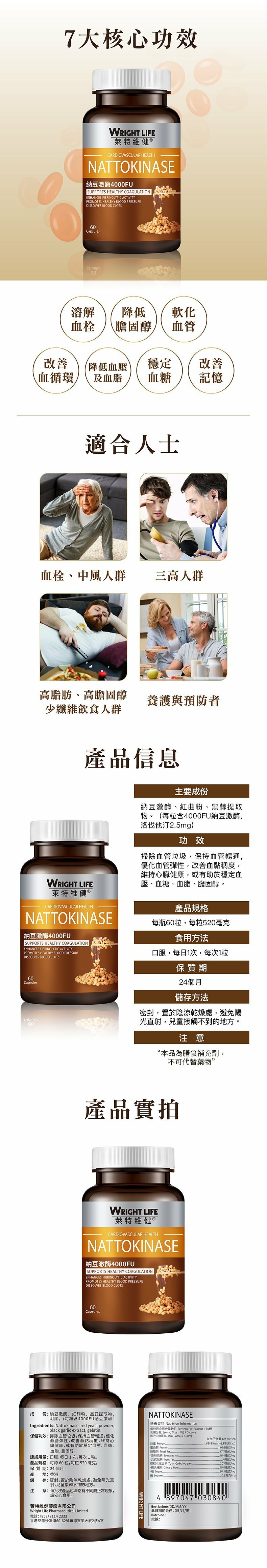 納豆激酶,紅麴粉,黑蒜提取物(每粒含 4000FU 納豆激酶)