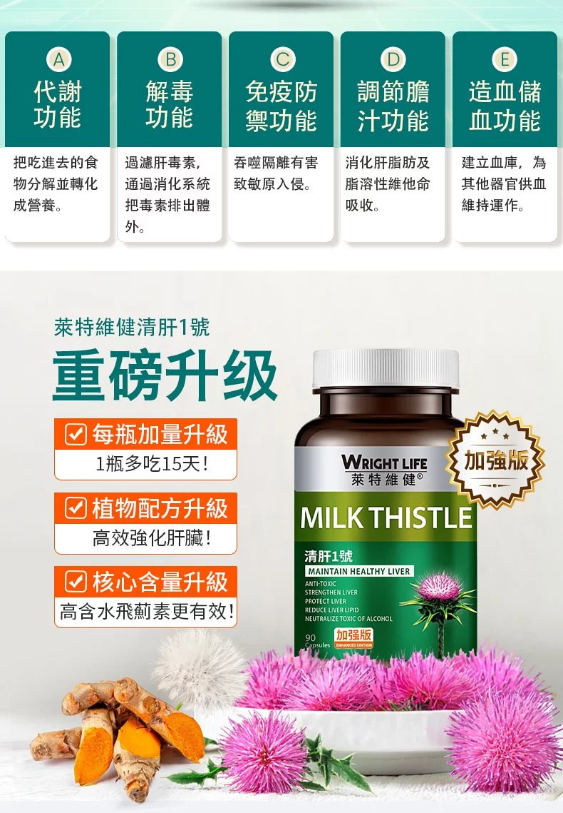高純度水飛薊精華,蒲公英提取物, 天然薑黃素
