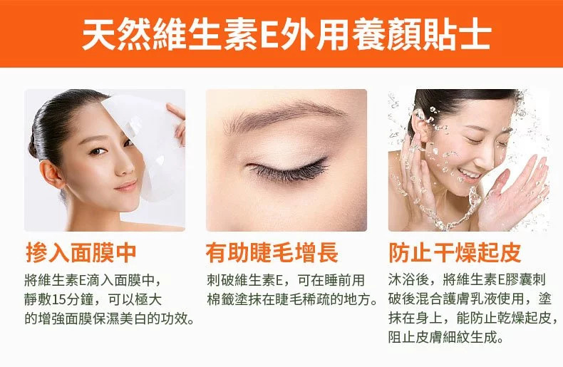 天然維生素 E(每粒含400 IU),葡萄籽油
