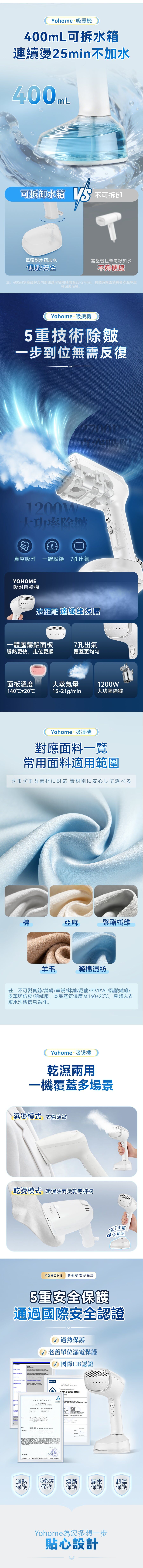 5.400mL大水箱,連續蒸汽約20–27分鐘。