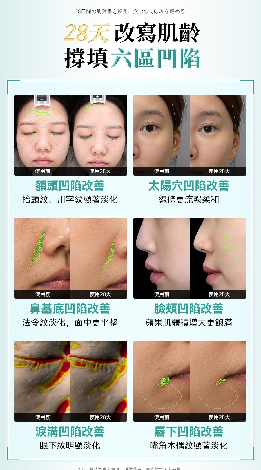 3.有效改善蘋果肌凹陷、雙下巴、抬頭紋、法令紋等肌膚問題。