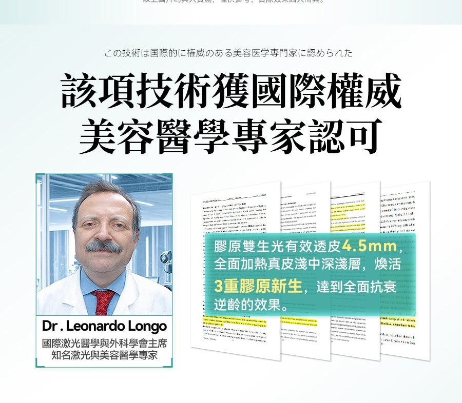 1.院線級透皮膠原雙生光,深入淺中深真皮層,激活膠原新生。