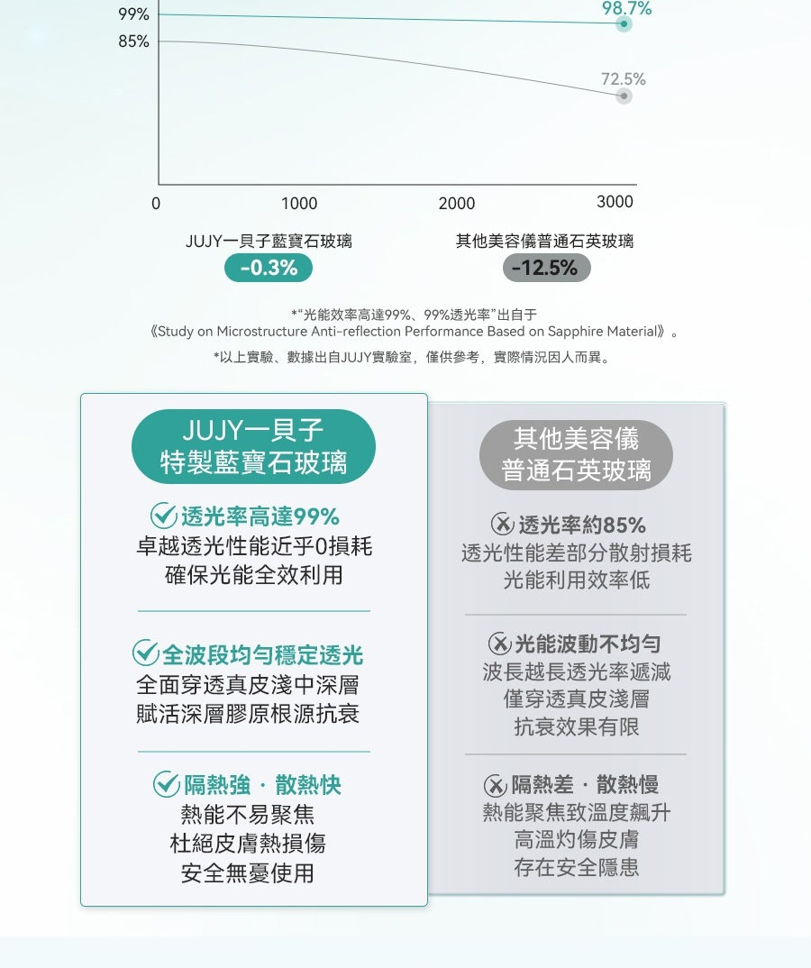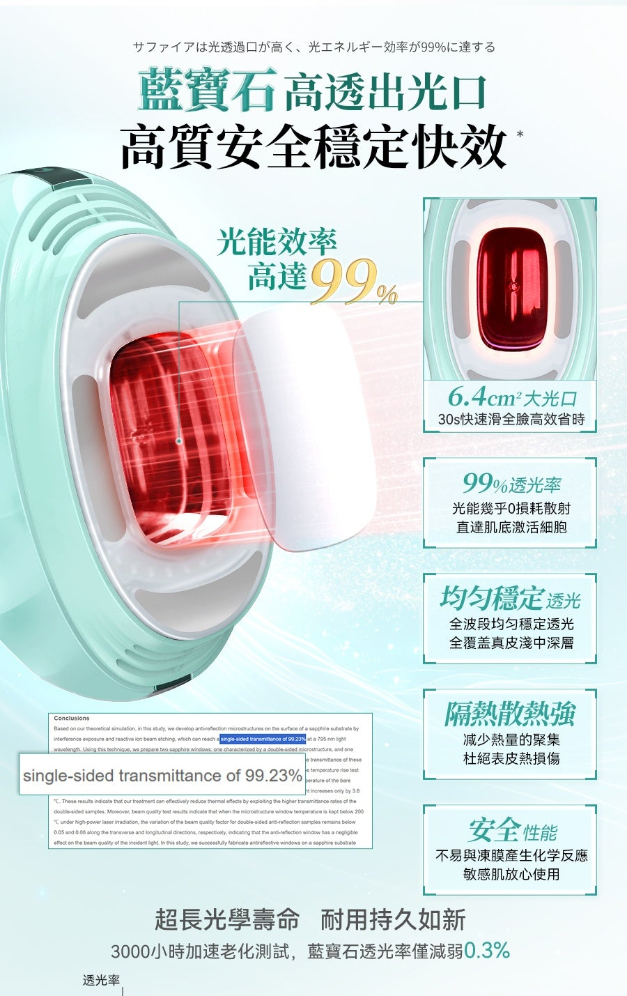 4.99%純光藍寶石6.4cm²出光口,30s快速照射全臉,高效慳時。